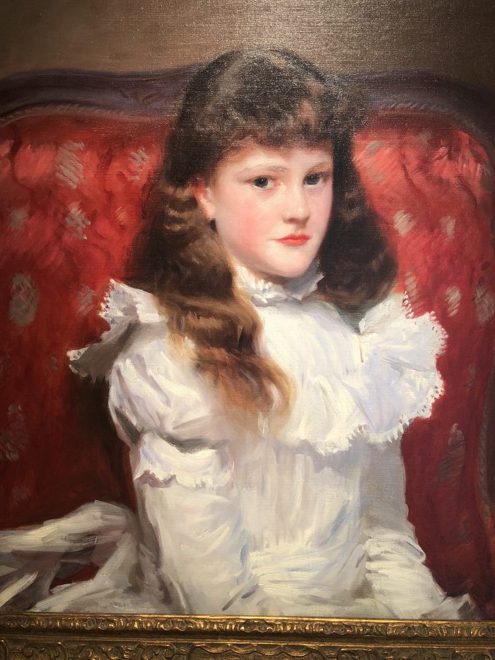 Whenever I visited the Metropolitan or the Frick, when I lived nearby, I would get pulled into the paintings that depicted lacework. New Britain had a few examples. This is John Singer Sargent’s Miss Cara Burch, 1888. While everyone else admires this young girl’s porcelain complexion, I am studying crispness of her silk dress and the frill at the edge of her ruffled neckline and bodice.