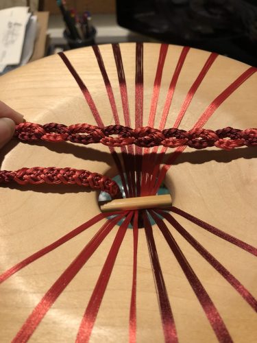 Here is a small section of braid where I have manipulated the pattern by rearranging the color order of the tama.
