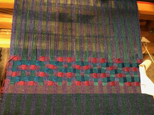 I you do a google image search you’ll find lots to enjoy and consider in planning your own DDW adventure–same is true for looking on Pinterest. The DDW time has come for me. I still have plenty of warp left on my first project in this technique, and lots of ideas for how to proceed with the warp that’s left. I just need to spend time tweaking at the combby on that loom to get it to play well with me! Here are my first three samples from that warp.