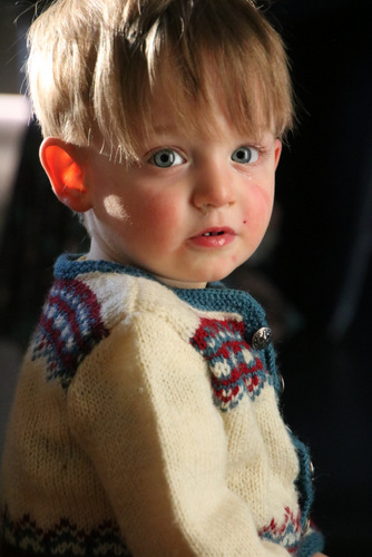 When we celebrated Christmas with our grandchildren and children I brought Rhett a sweater that I knitted for his father Rob, more than 30 years ago. You can imagine what this photo means to me.