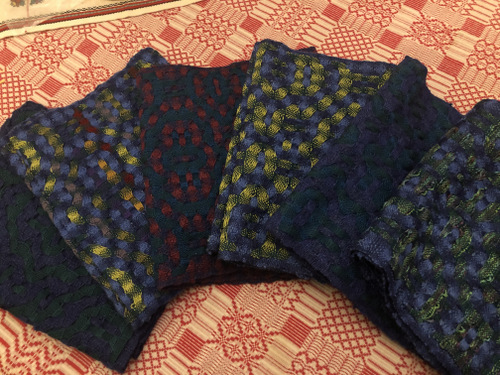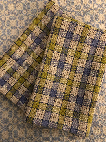 Here are two of a set of napkins that I wove for Chris and Melody. I barely had time to weave just the two and get them hemmed. I knew they’d understand, and of course they did. I was so touched by how much they like them.