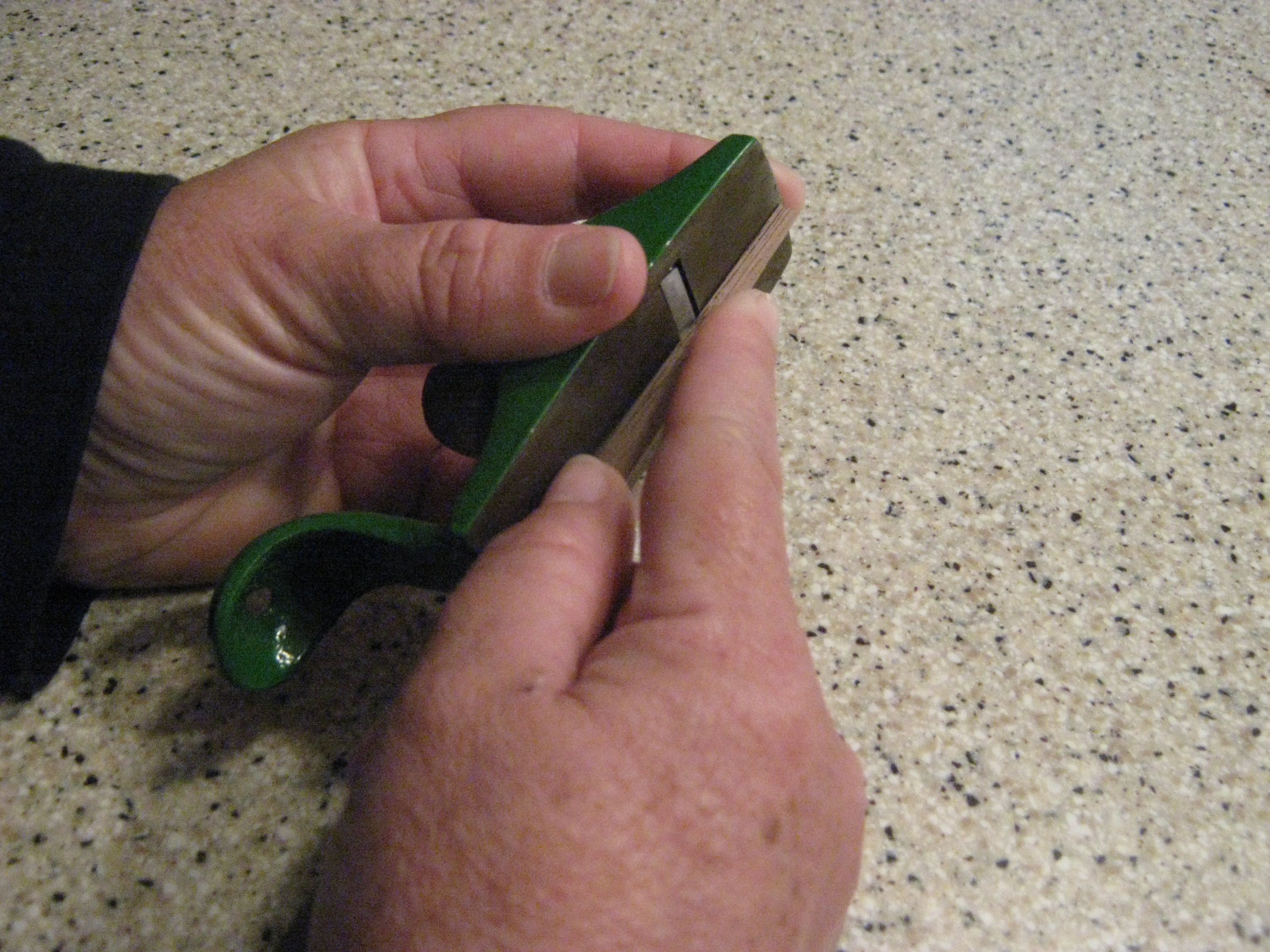 I taper the staves using a small hand plane. I learned that the proper technique is to hold the plane stationary and move the stave against the blade.