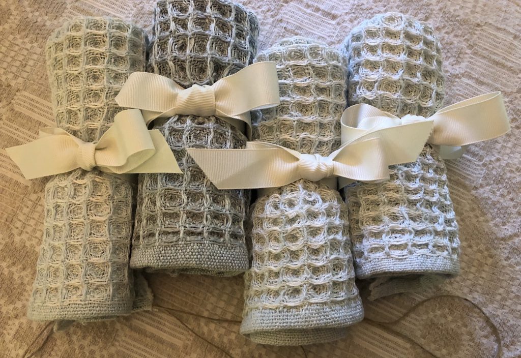 I can’t decide which project I like best. The face cloths are such simple things. Hardly worth the effort perhaps, but again, they were so therapeutic to weave. I enjoyed thinking about who might get these little gifts, and what I might include with this gift, like local handmade soap or one of L’Occitane’s lavender soaps from Provence. Weaving them was a time of escaping the current stress of the world and doing something profoundly simple but caring. Self care, if nothing else.