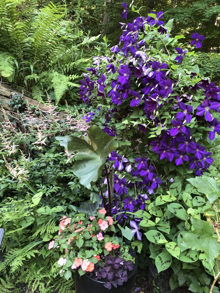 The garden off my studio in June, when the clematis and astilbe were looking lovely.