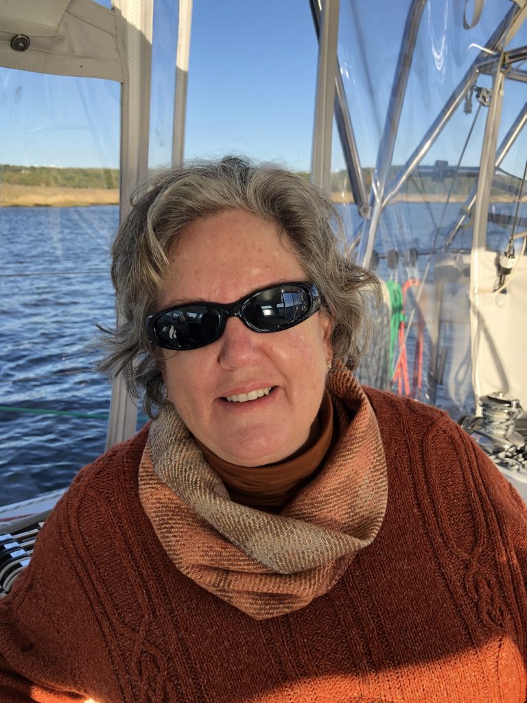 A silver lining to being somewhat locked down at home is that there are fiber festivals that I would normally never get to visit until this year, when many of them went virtual. I took a virtual visit to Edinburgh in September for Scotland Cloth #20. It was well done, with the ability to visit the virtual booths of the artisans, watch videos that some of the fine crafts people had prepared, even choose music to accompany one’s tour of the festival. I’ve had a desire to buy something from Bonny Claith (aka weaver Cally Booker), and this was my chance. Now that it’s a bit colder, I’ve been enjoying my new cowl, sent all the way from Scotland! It’s a great accessory for my ancient Elsbeth Lavold designed cable sweater (Siv). And note my new do. After 10 months with no haircut my hair came down to the middle of my back. It was not youthful! I had become one of those stereotypes of a weaver with long gray hair. All I needed to complete the look was Birkenstock’s and cats.