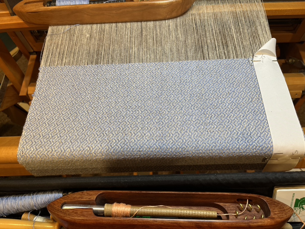 The yarn has also compressed during weaving. I need to get it back to the ‘tape’ it was initially, and I need to get close to matching the blue I dyed in October! Wish me luck!