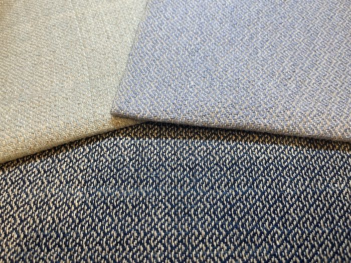 When I first put on a linen warp to weave some placemats with paper as weft, I was so excited to use the paper yarn dyed with indigo. Granted, it was a very pale indigo, so I admit I had some worries about how the woven pattern would show up on the pale warp of white and unbleached linen (#365 in Strickler). It didn’t show up well at all! Unsure of how to progress, I may have reacted too quickly by diving through stash and deciding to use a beautiful blue linen as weft. The placemats are lovely in this blue, but I continue to wish they were paper. I now have four of these, and I used up the whole first warp to get them.