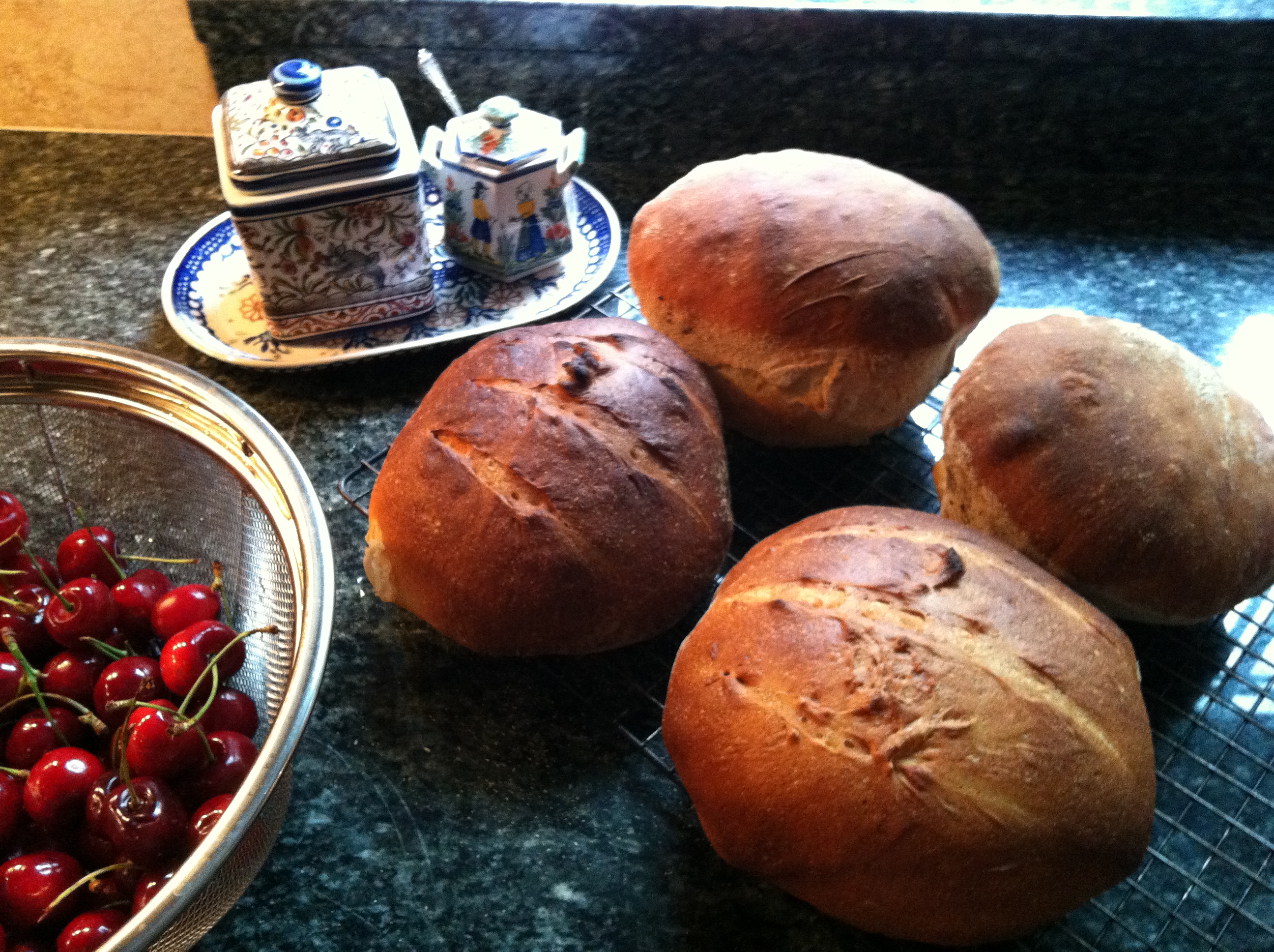 Along with bread, I made my first batch of pesto with basil from the garden, so dinner this evening will be pesto spread on cod filets. Tomorrow I hope to pick the first tomato from the garden! I will make a sandwich with my bread, spread on a little pesto, sliced tomato, and a shaving or two of parmesan…. to assuage my disappointment….