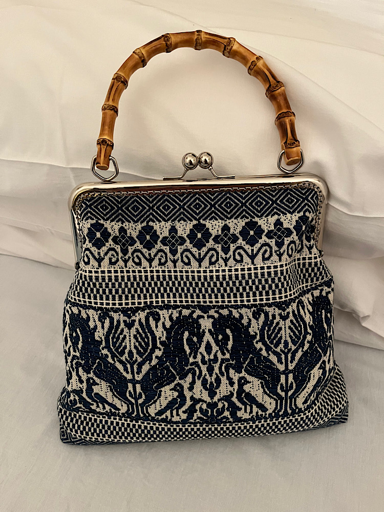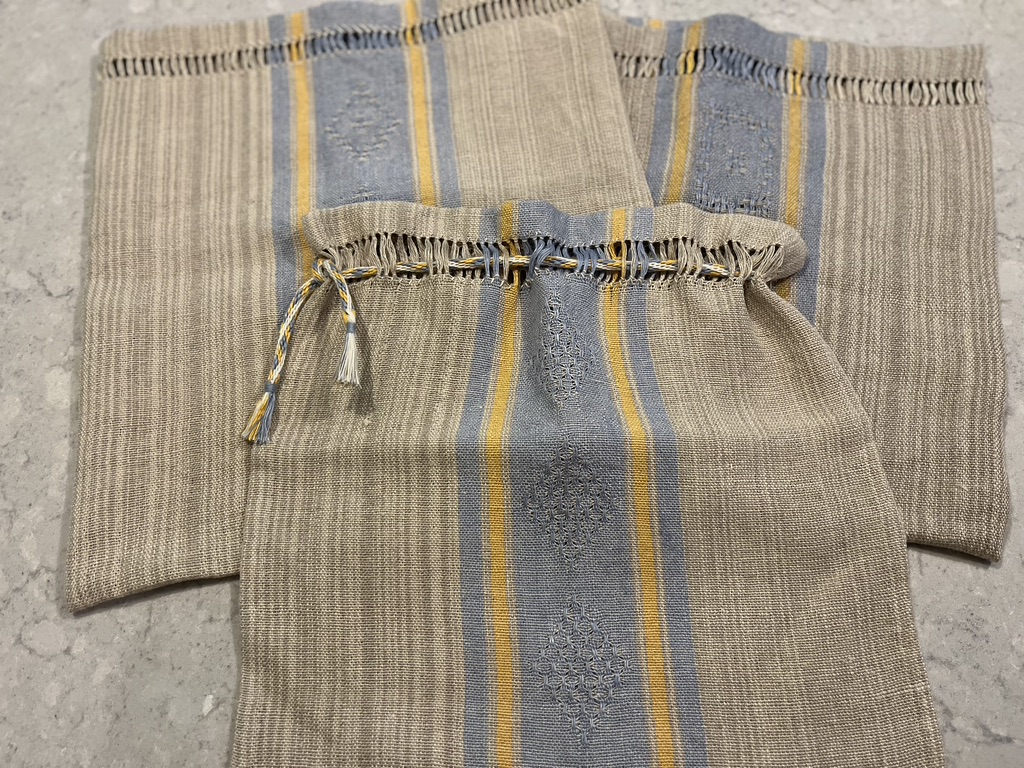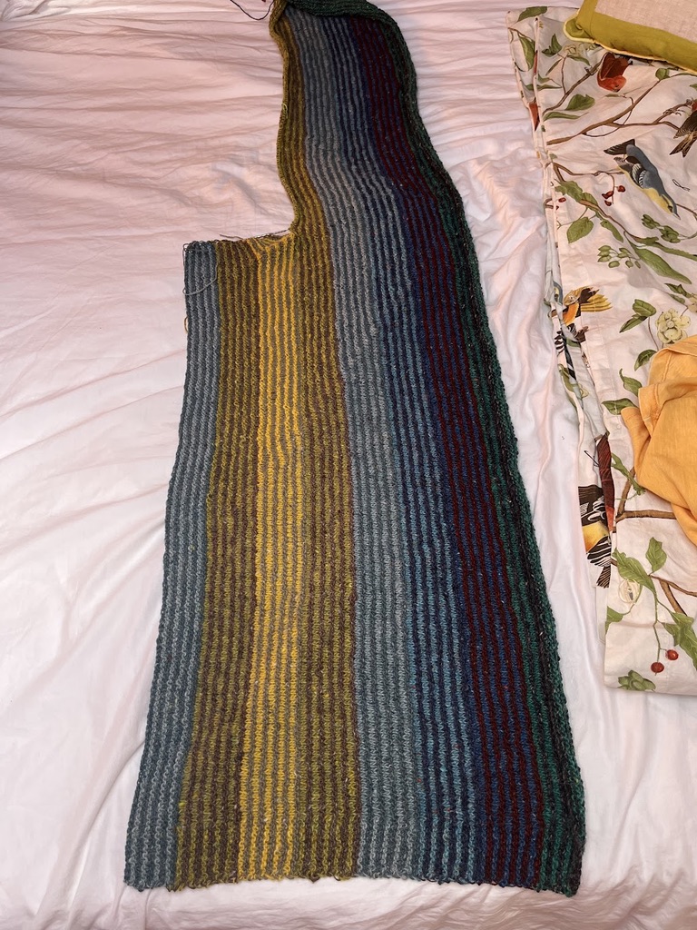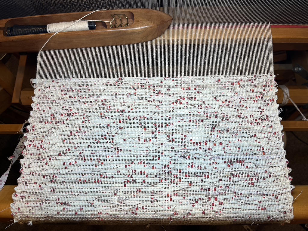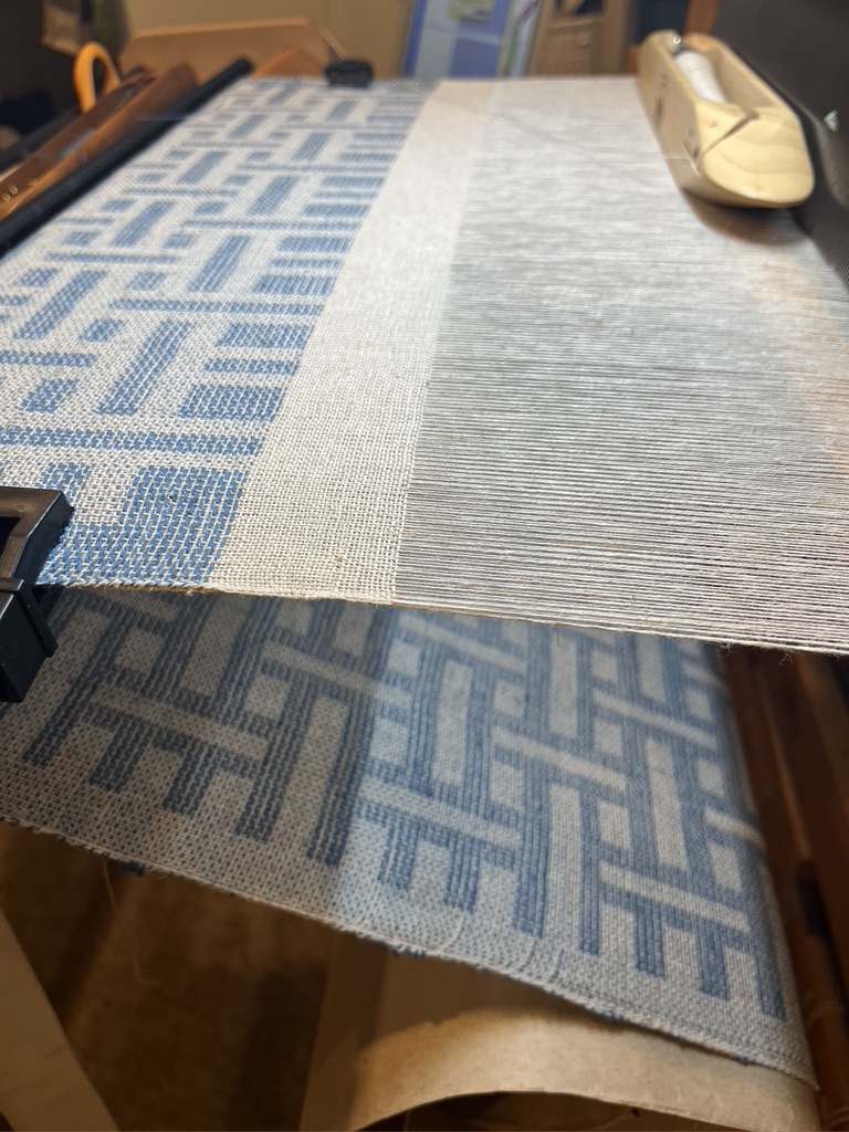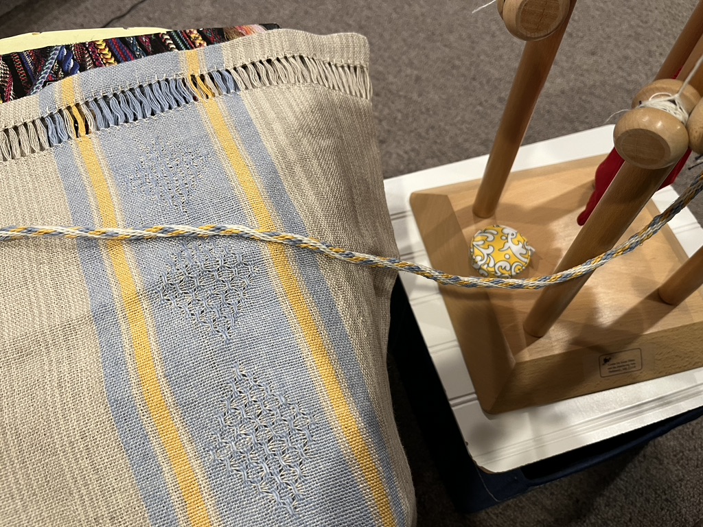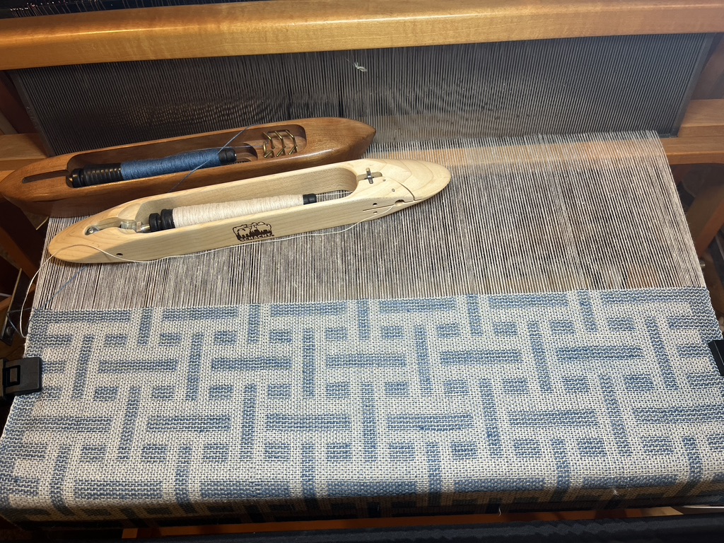 I did a lot of weaving this year. I finished half the warp of woven sashiko, and I made a number of sakiori samples which led to a vest that actually fits me and a tote bag I’m enjoying using. I have the tote bag with me now on Pandora.