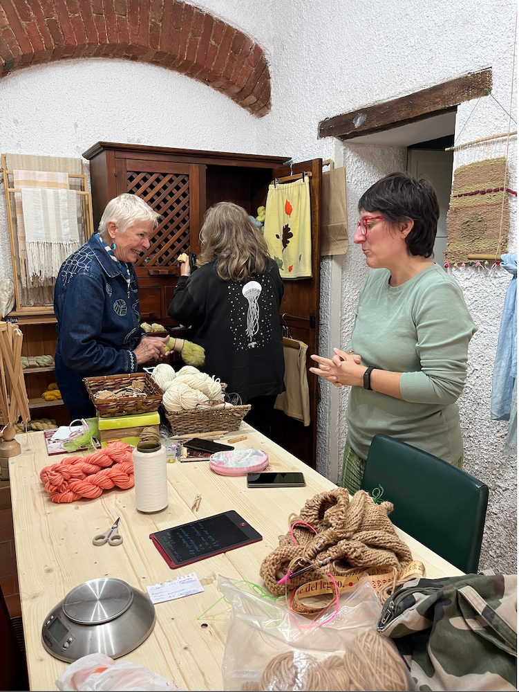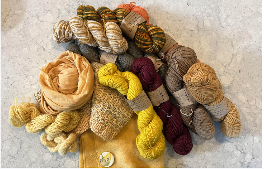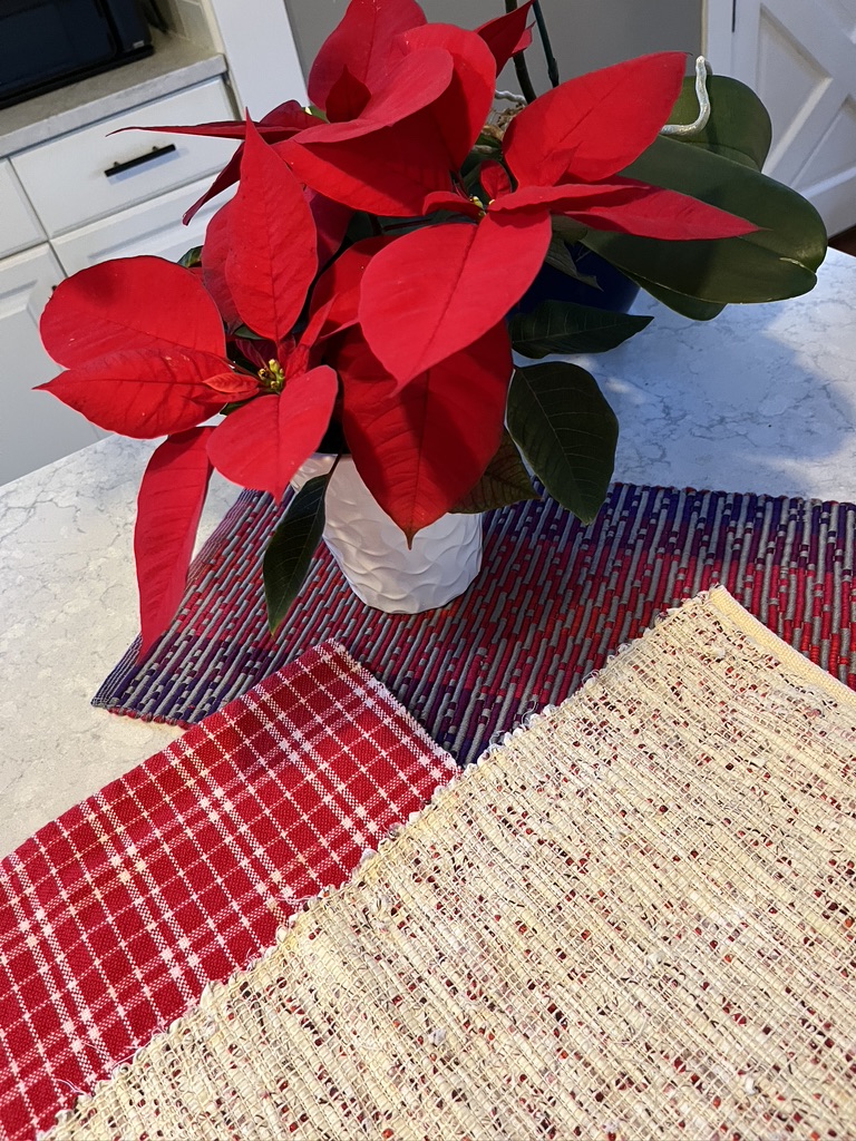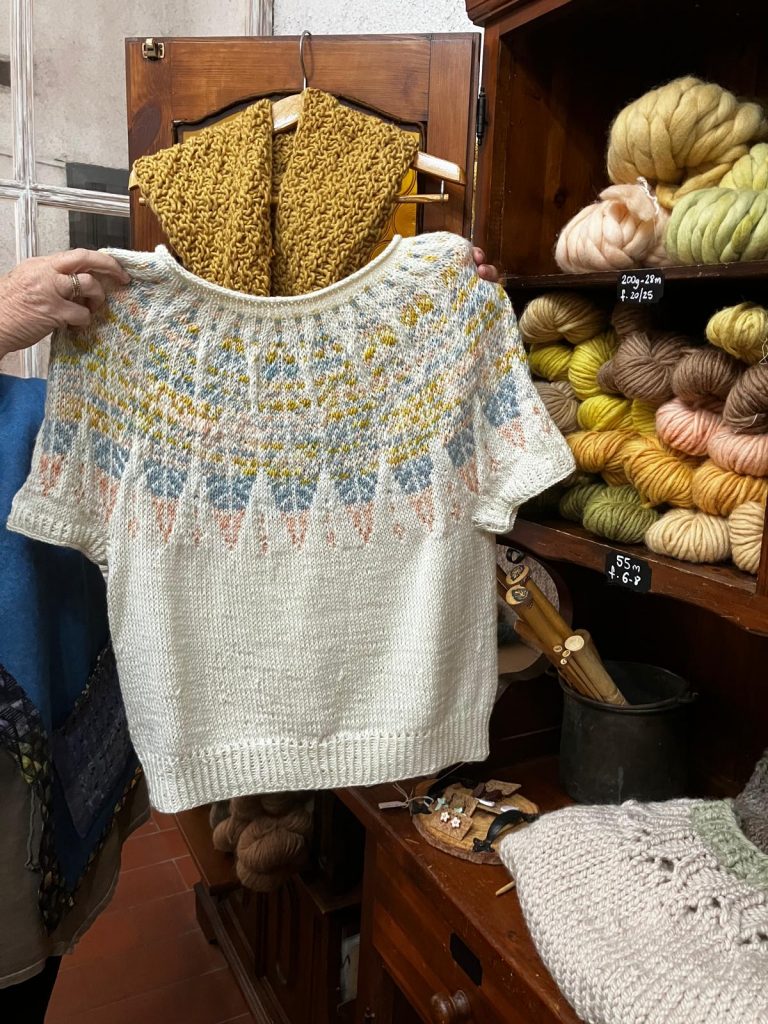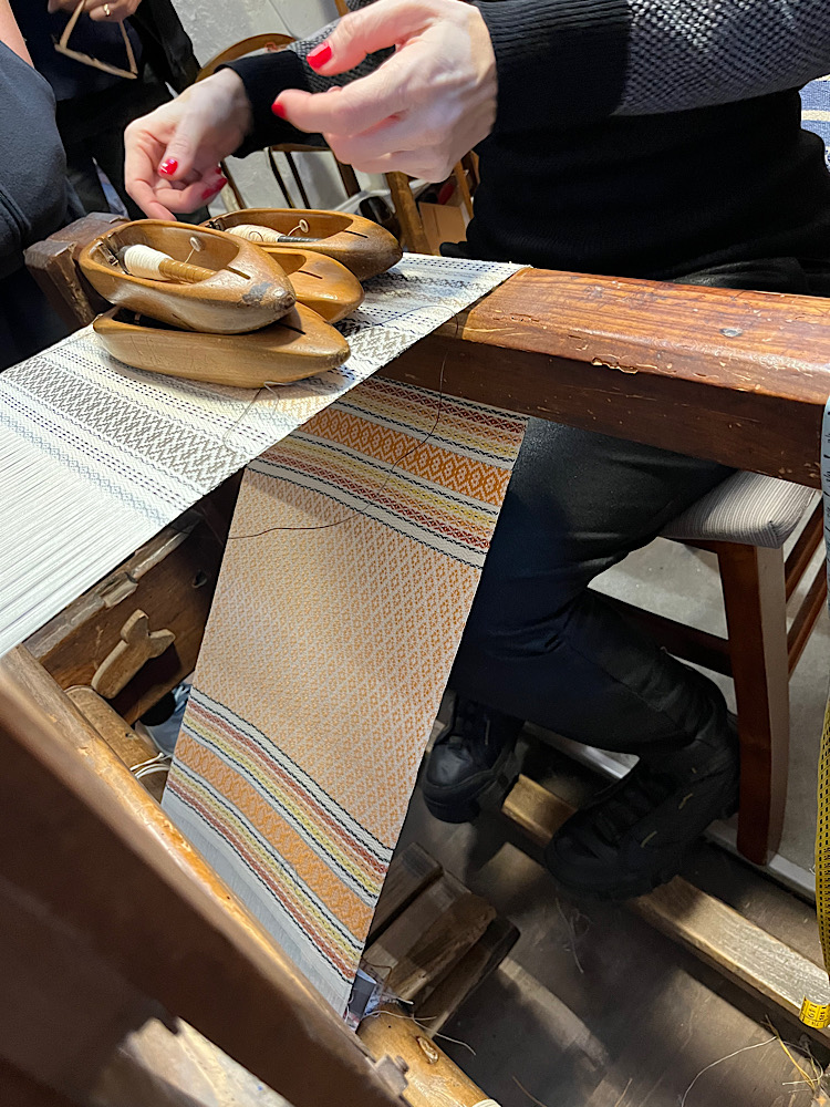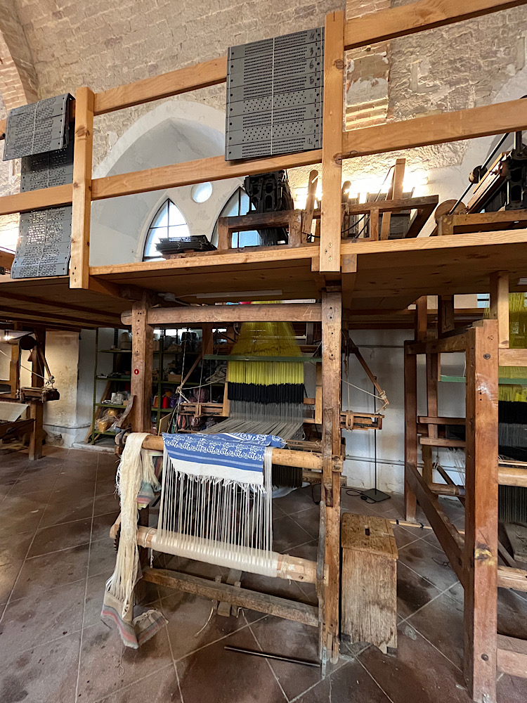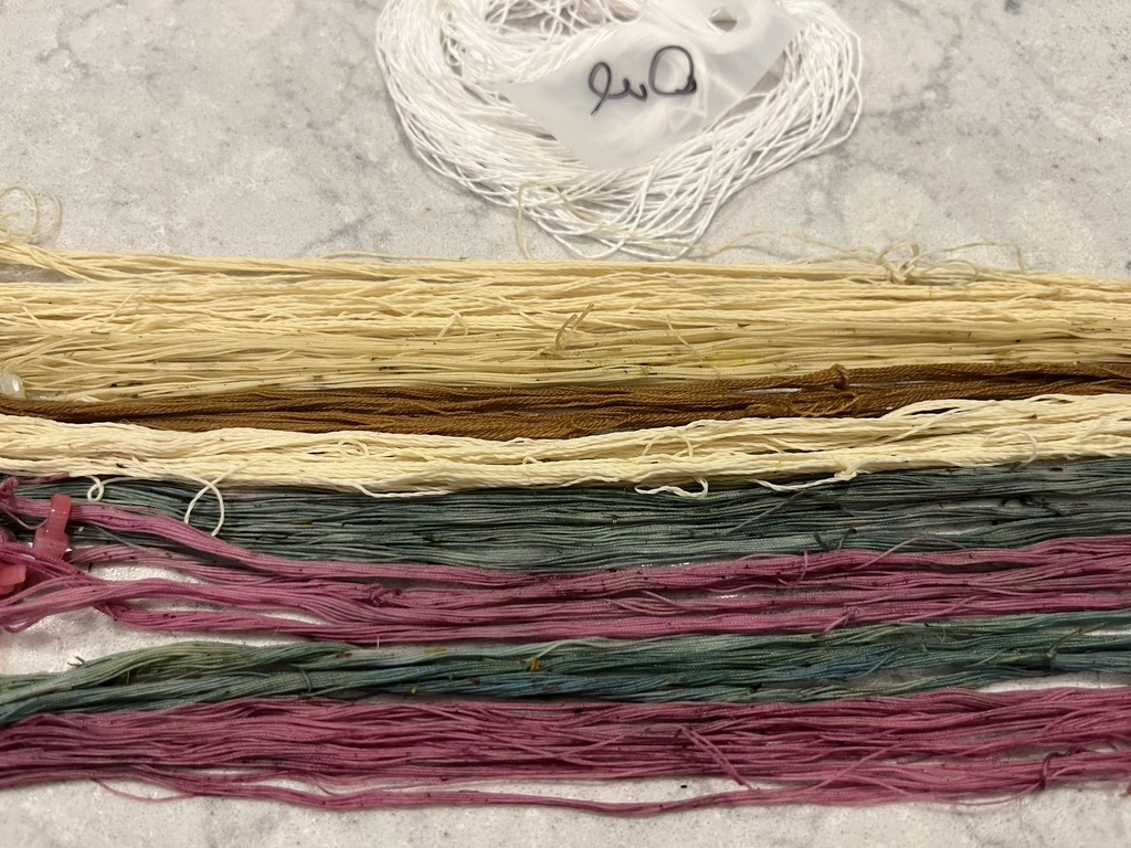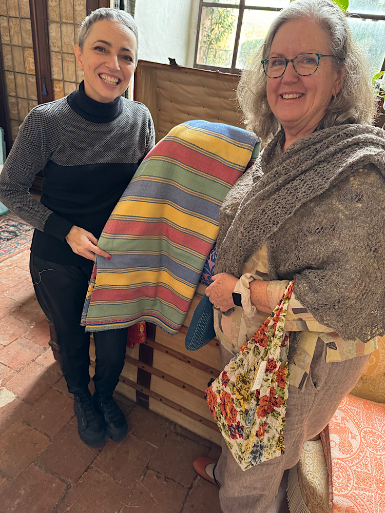 And then there was a little weaving and a LOT of dyeing in Umbria, Italy, which I wrote about here and here. In December my friend Jody and I put some of our new knowledge to work during a two-day dyeing session in my kitchen—right after the new year. We used indigo, weld, madder, and olive leaves and branches from my olive tree. It was hard to stop, and it’s one of the first things I want to do when I return home. The circle of colors starting on the lower right is 3 shades of maddder, , weld, olive leaves, weld with a short dip in indigo, two skeins in indigo (the first one is very blotchy, not sure why), and the last two are indigo dipped in madder. The last skein is close to a color I wanted to recreate from one of the skeins we dyed in Italy. I look forward to attempting that again at home this spring.