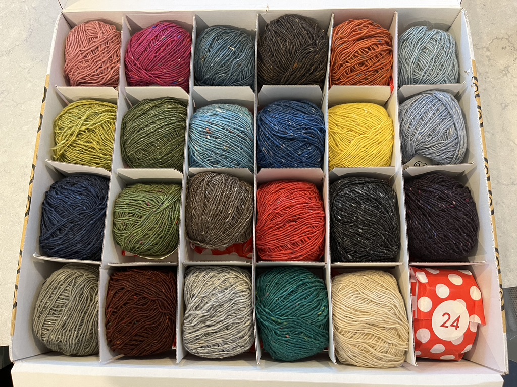 I also finished two knitted items this year: a vest with the yarns I got from the 2023 Kate Davies advent yarn box. It is tunic length and has a shadow knitting pattern running through it. The 2nd project is a sweater from a Kate Davies pattern called “Auchnaha.” I used her beautiful ooskit yarn in a natural grey/brown. I’ve enjoyed wearing both these sweaters before leaving New England for the tropical weather in Antigua.