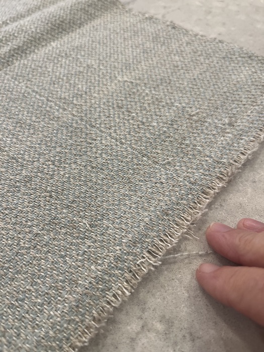 I began weaving and was zipping along nicely. I allow 1 1/2″ at the beginning and end of a placemat for a turned hem. That is 3″ total. Sometimes I weave the hems with a different weft, but not usually. I did give that a moment’s thought, but I was pretty sure the weft from each placemat would weave a full placemat. Well, it didn’t. And the worst part is that when I ran out of weft I was exactly 3″ short. Just the amount I could have woven as hems with a different weft! Poor me!