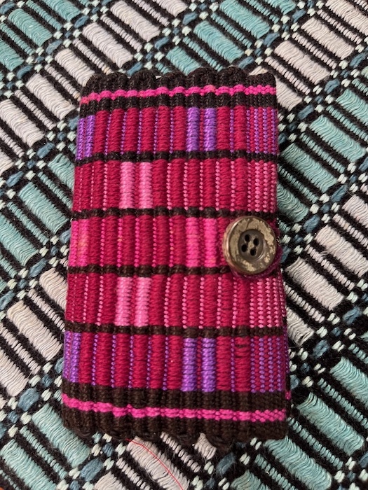 Here are two little gems that hold tools. The first is a wonderful woven envelope by Lucienne Coifman (of rep weave fame), who is a member of my weaving guild. I have a number of small items from her that she makes from samples. Her hand finishing is exquisite.