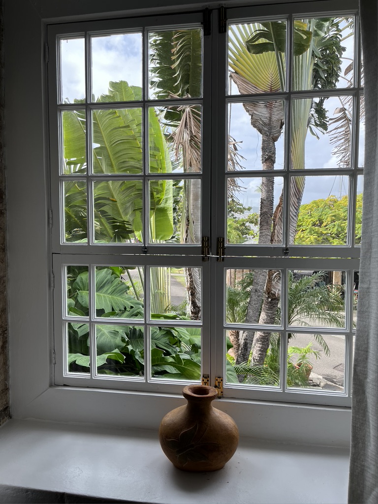 In the rainforest people clear small plots to grow all kinds of veg and fruit, and the rest of the West Indies is indebted to Dominica when the supply boat arrives in the other islands carrying produce grown here. They even grown coffee here in the higher elevations. The melons and bananas are unbelievable! I’d forgotten what non-GMO avocados taste like, and these bring back memories of the first avocados I ever tried, as a teenager, years before Haas avocados had been developed. I’m a big fan of the real ones now. And, as it happens, there are numerous varieties of avocados. We’re about to try some that are quite tiny. The one thing I cannot find–and don’t even seem to know how to ask for–is cilantro! There is an herb grown on some of the islands called “chadon beni” that’s pronounced more like “shadow benny.” It does not look anything like cilantro, but it tastes like it! It roots easily, so I was able to grow my own the only year I found some to buy.