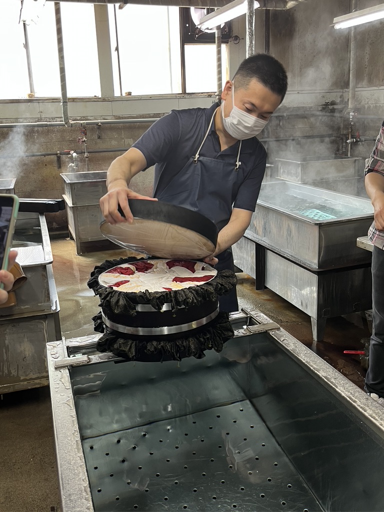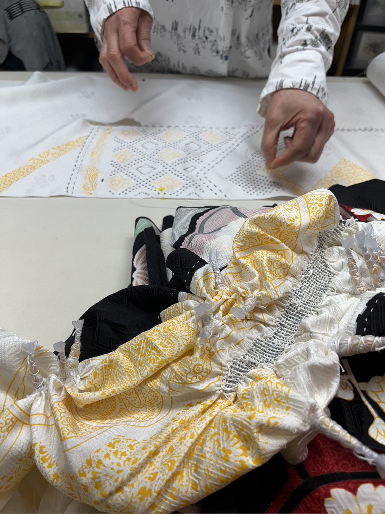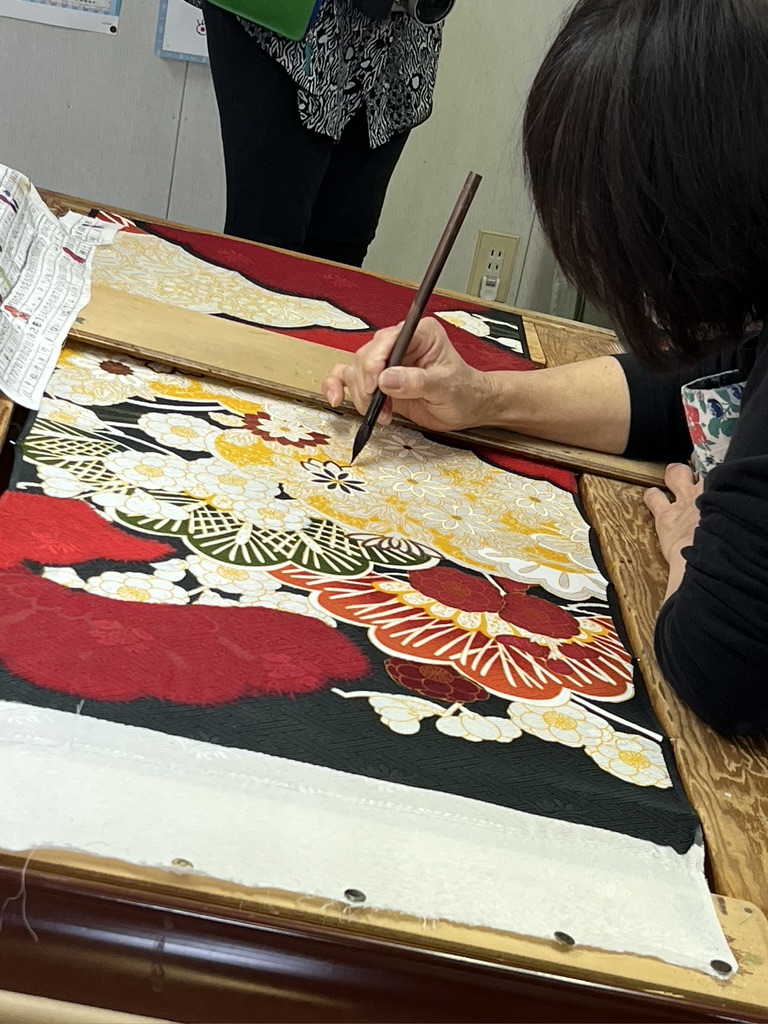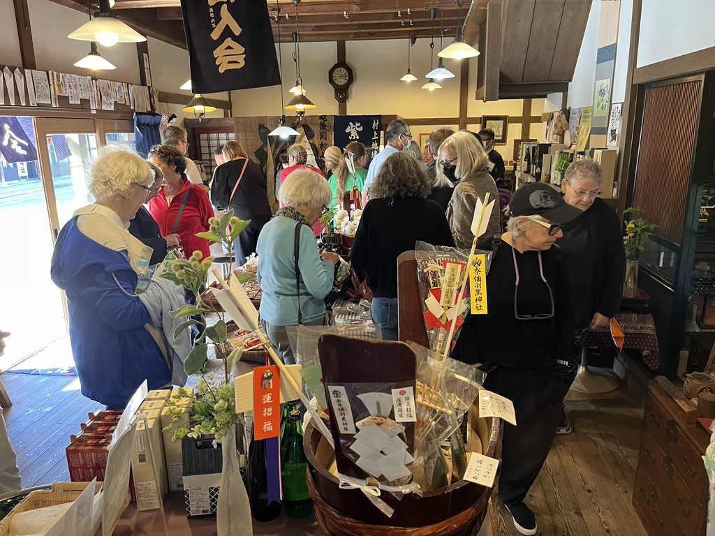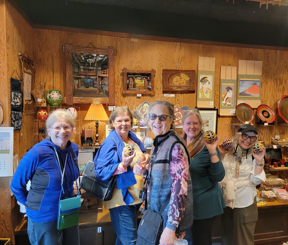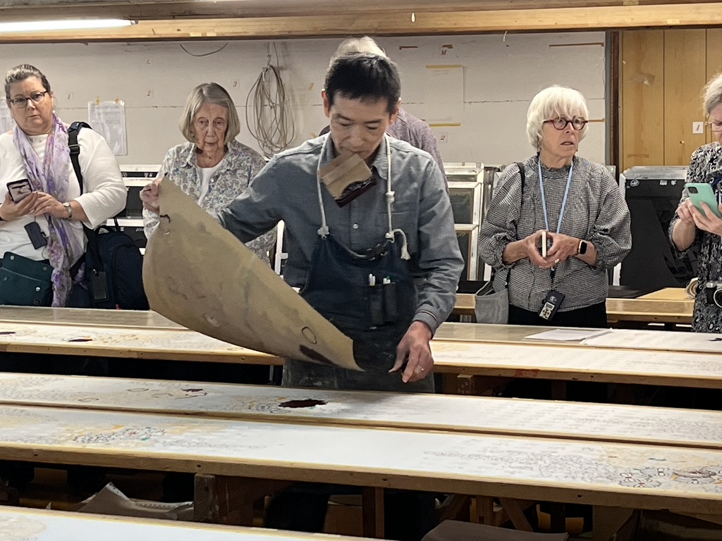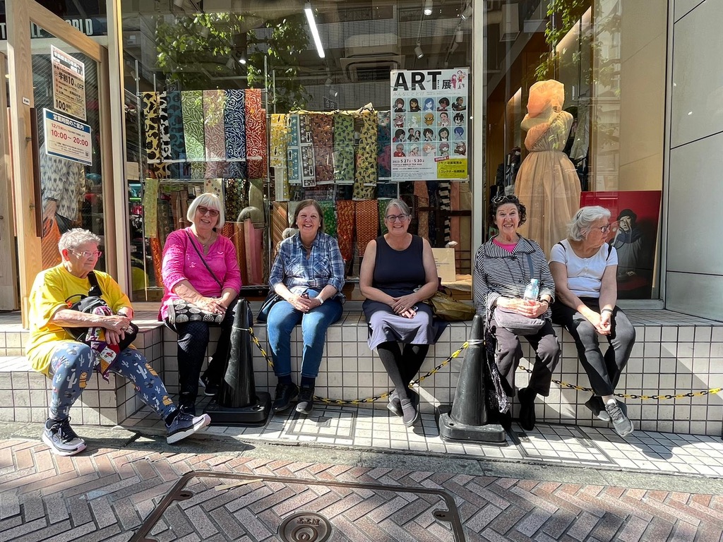 One cultural tradition from this trip that I hold dear is the act of bowing, and the way all the workers we visited came outside to bow and wave goodbye to us as we left their presence. It even happened at large hotels. The staff would come stand beside our bus and bow and wave to us as we headed off into our future. Eventually these thoughtful goodbyes brought tears to my eyes. Wouldn’t life be sweeter if we all bowed to each other in salute? This particular incident happened at the Sakiori workshop. I remember these weavers with affection, along with everyone who crossed my path on this journey.