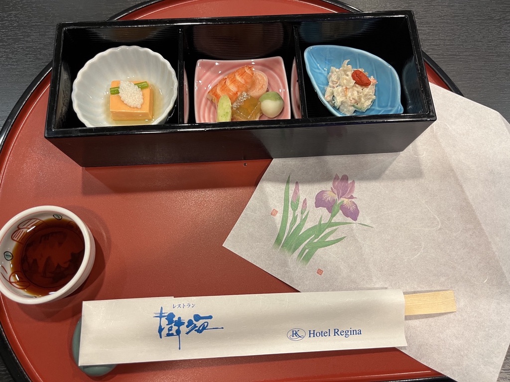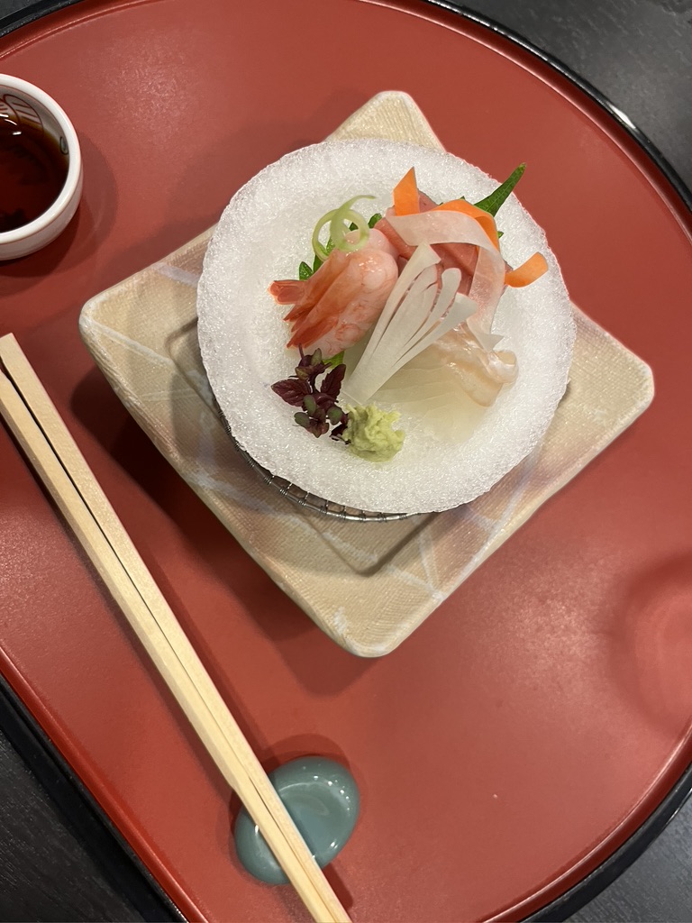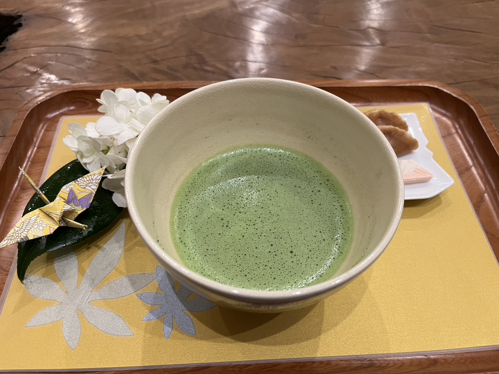 A few us opted to enjoy the tearoom. Our matcha tea came with some confections (on the right) and the tiniest origami crane I have ever seen. I brought that crane home with me!