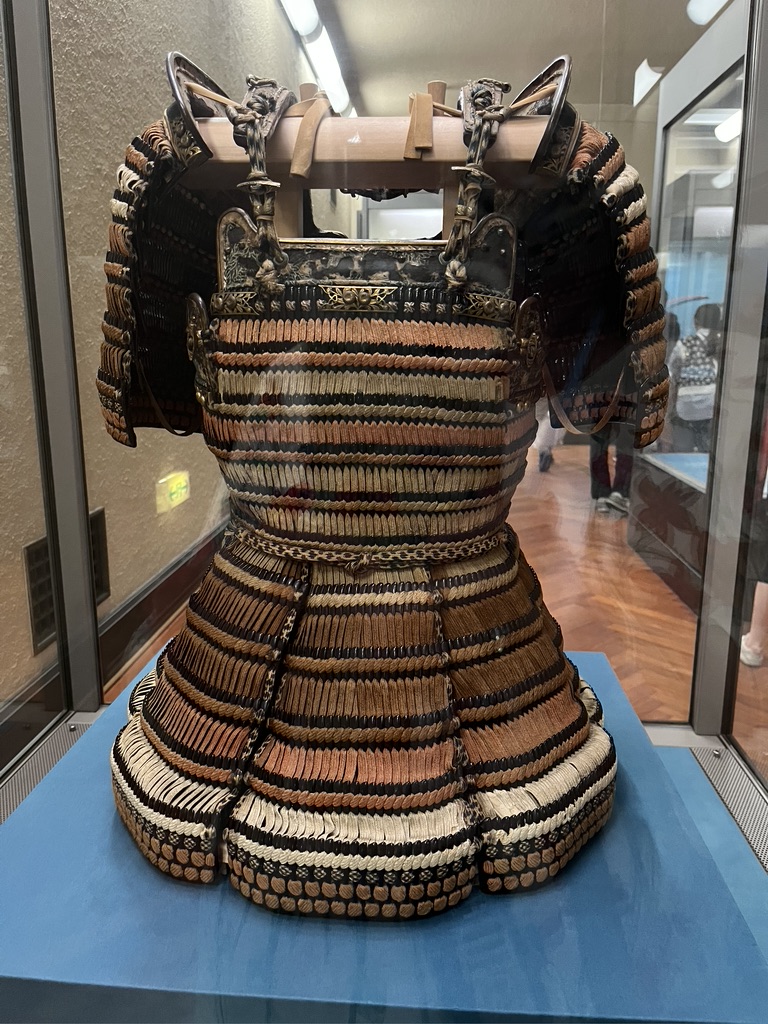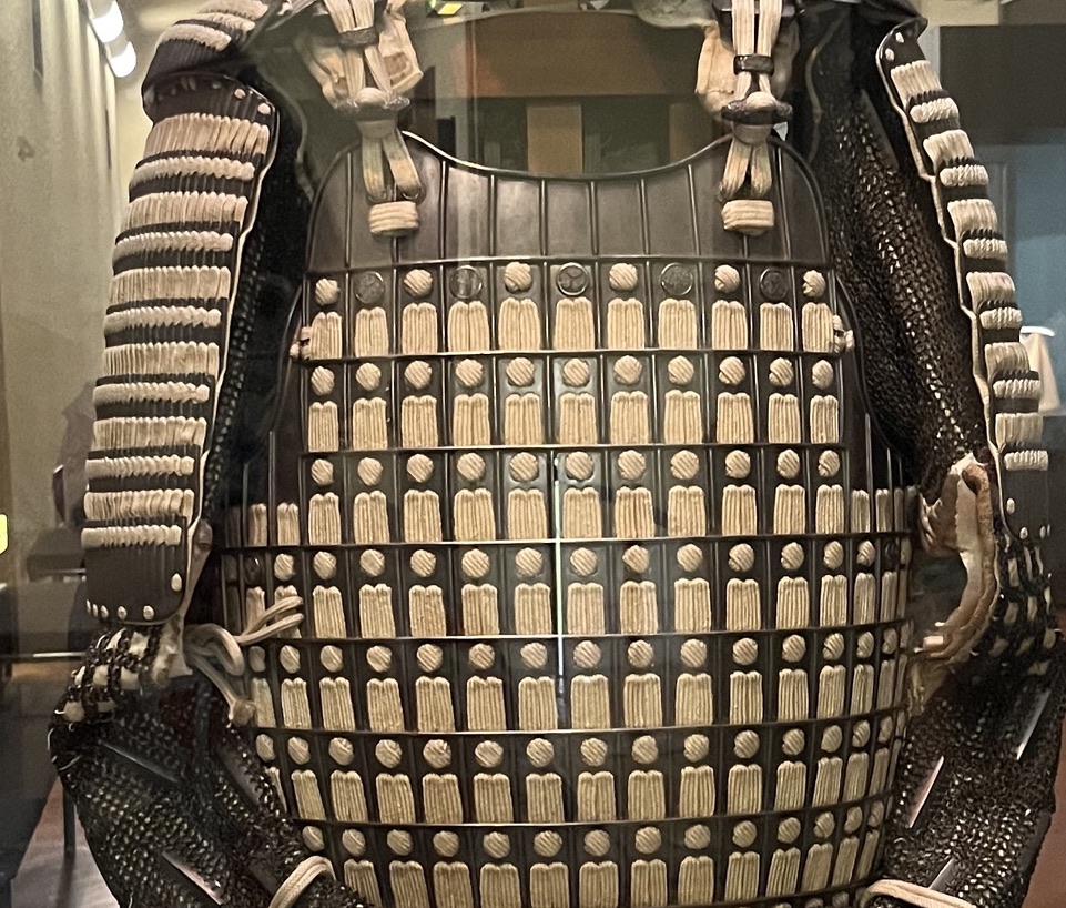 There was plenty of samurai armor on view, and I’m drawn to these wherever I find them. All the cream colored bits (and there is a lot of it, isn’t there?) are silk braids.