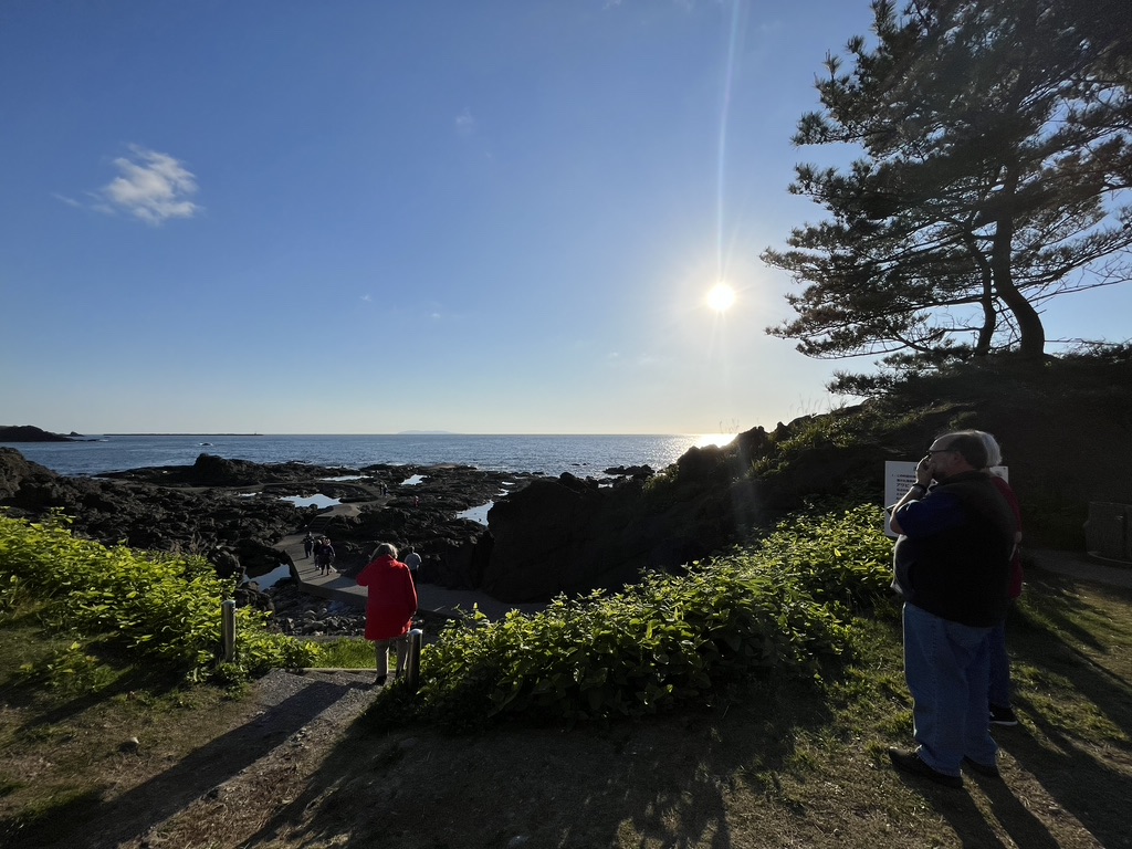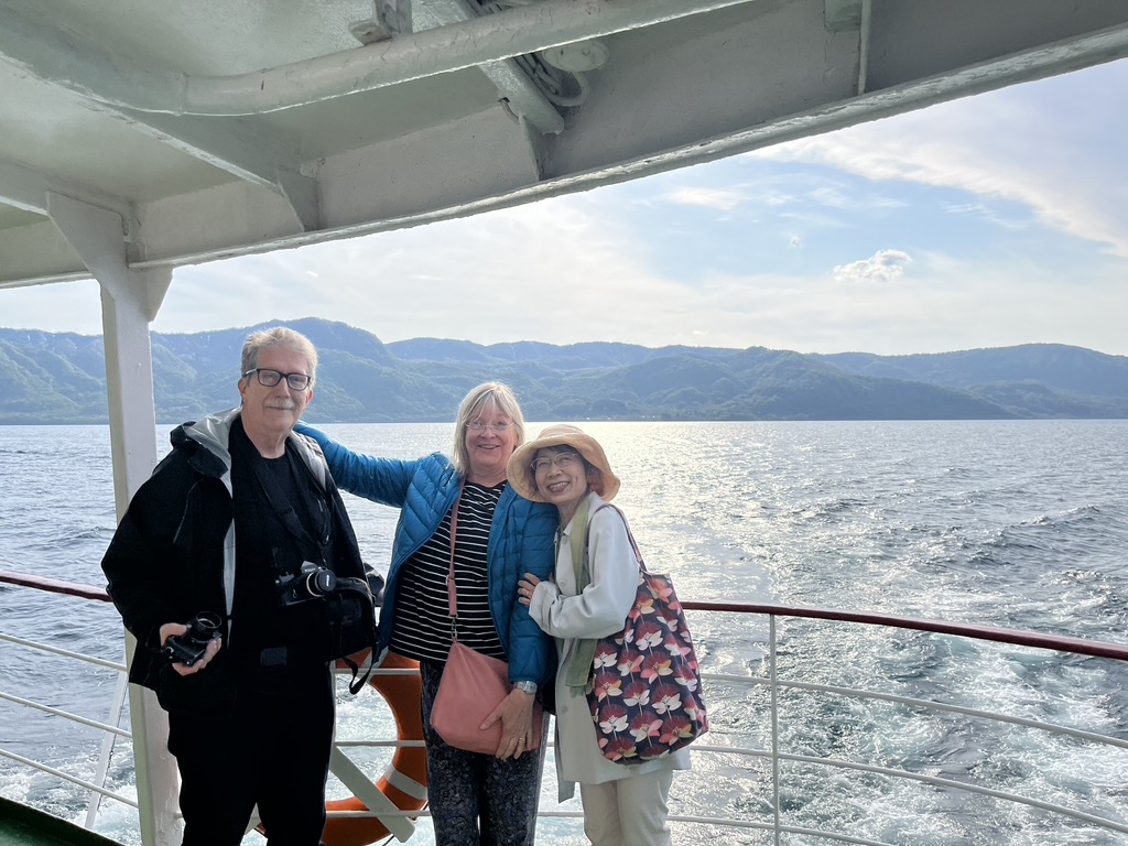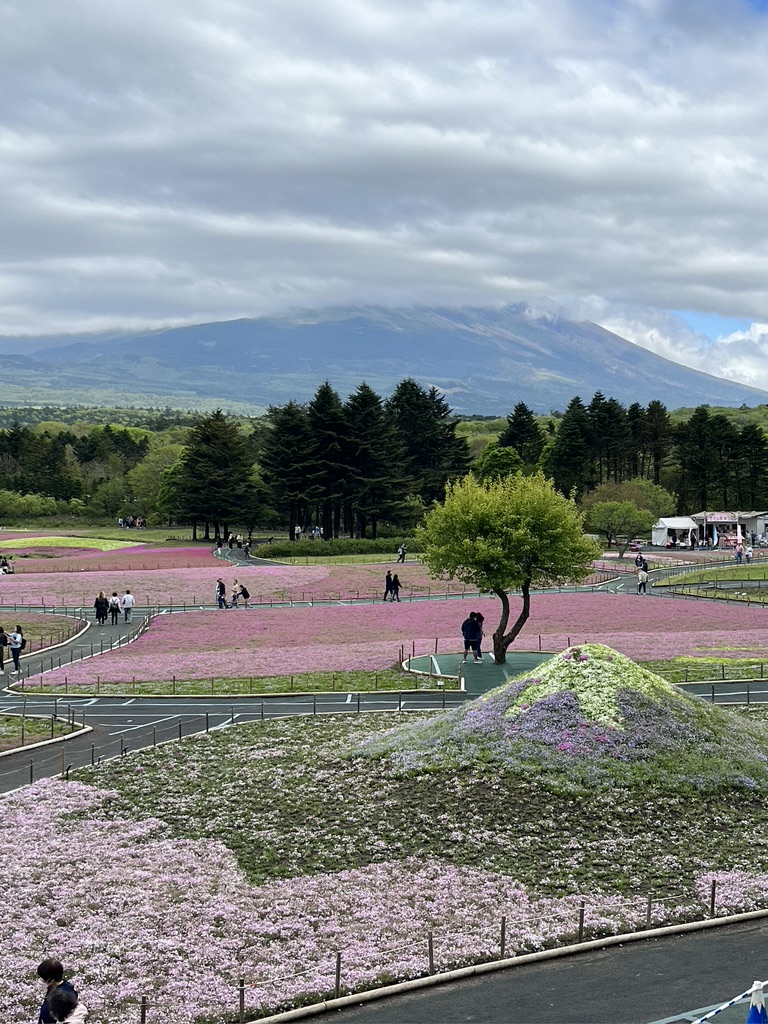 The rest of the day we spent at the Fuji Shibazakura Festival. Shibazakura is Japanese for the spring flowers we call ‘creeping phlox.’ It blooms in profusion in this area with views of Mt. Fuji. We stayed for a couple of hours, marveling at the expanse of creeping phlox and also hoping for a view of Mt. Fuji’s summit. The summit was cloaked in moving clouds and we gambled that at any moment the clouds would clear. It was chilly but we were determined to wait for that perfect moment between cloud cover. Our bus driver was on a schedule so our Japanese guide corralled us back into the coach before we got the long awaited view.