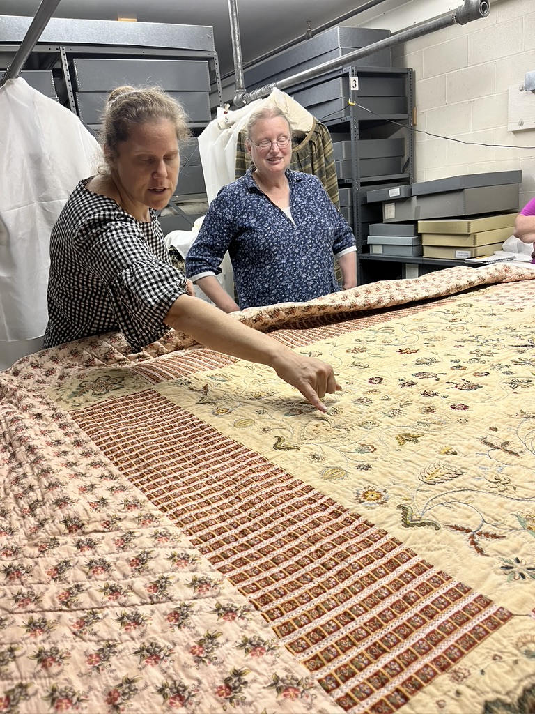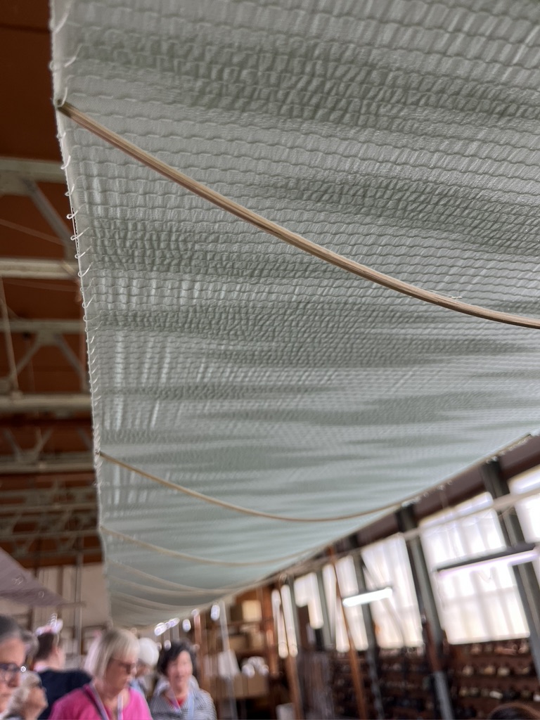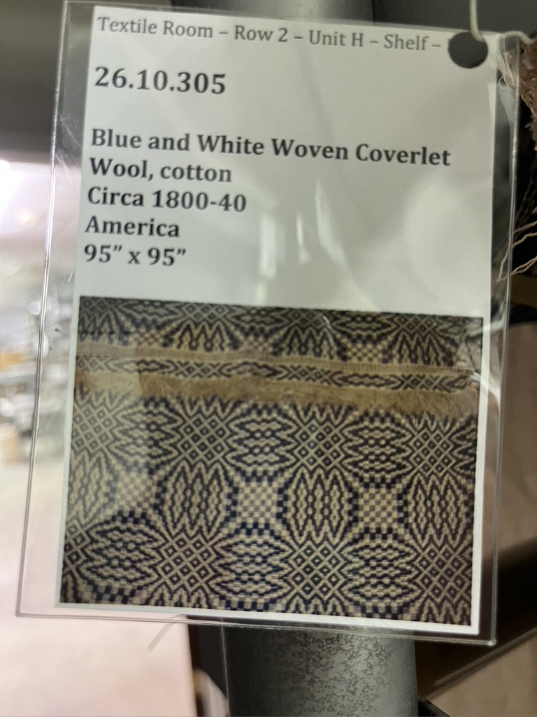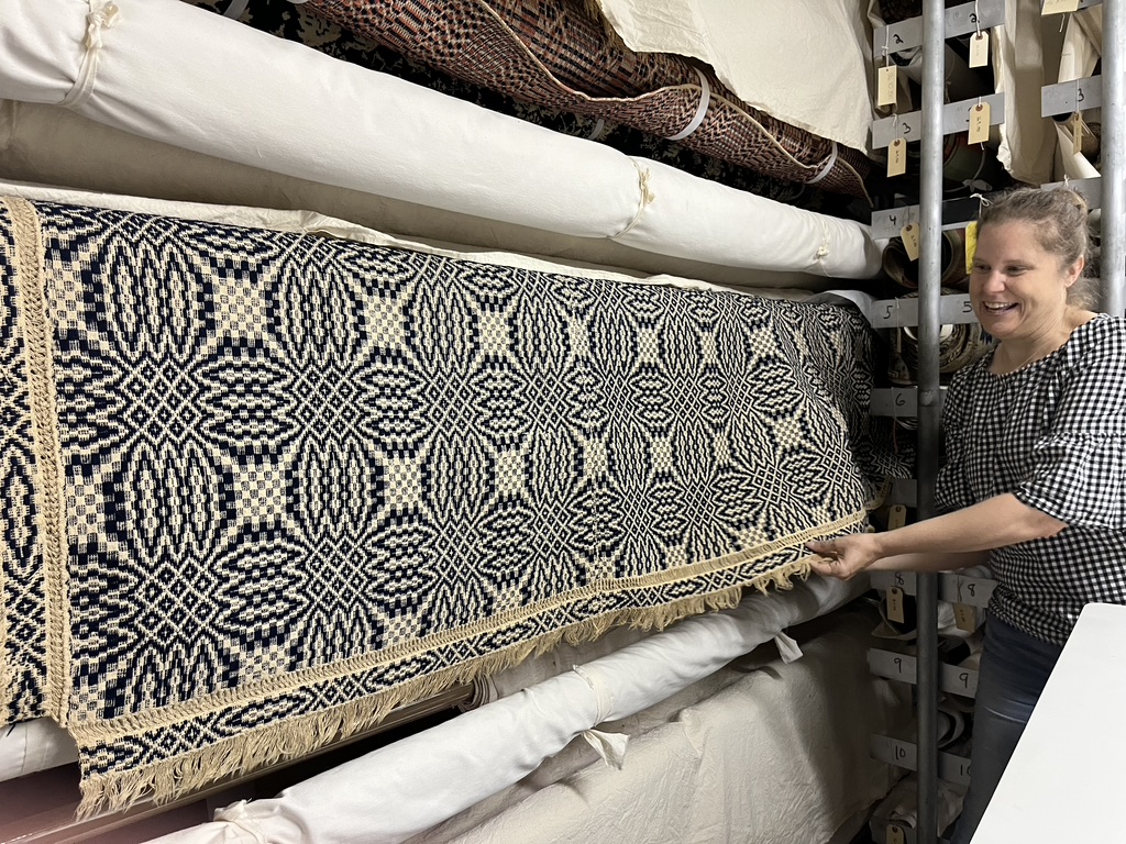 And then there were all the handwoven coverlets, of which we only saw a few! They are stored on rolls on rolling shelving, and there are a lot of them.