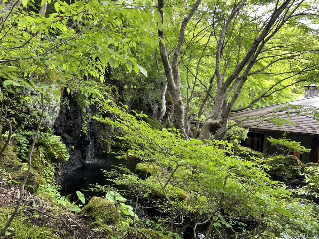 The museum is located where he lived. It includes views of Mt. Fuji, his serene gardens and a wonderful building he designed to house his numerous kimono series. No photos were allowed of his kimono, but we could enjoy the gardens, the tearoom and shop, and take photographs there.