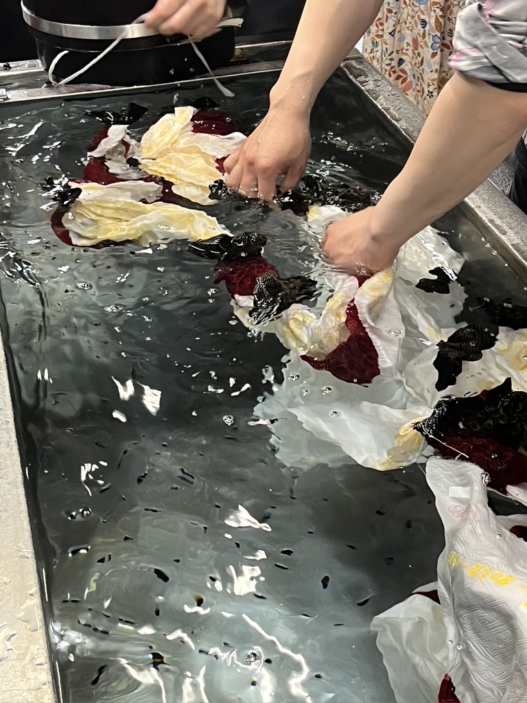 Once out of the vat, we watched the magic of our pieces turning bluer and bluer as we waved them in the air.