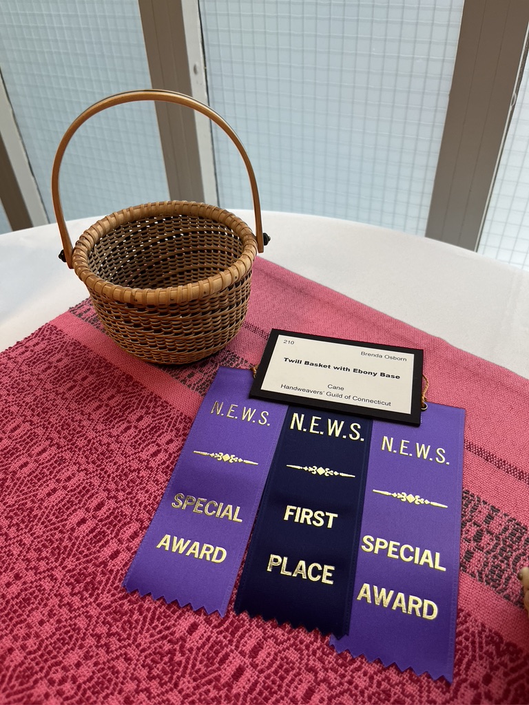 Gallery Exhibit at NEWS Conference, July 20-23, 2023. First place “Miscellaneous” for a Nantucket style basket, with 2 special awards for “Best use of Historical Inspiration and Best Use of Off-Loom Weaving.