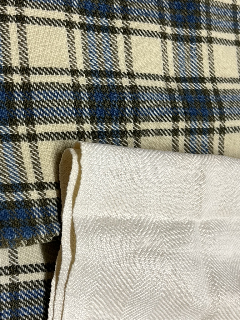 The linen towel on top is woven in twill which was known as diaper cloth, and no!–this does not mean it was a diaper. This is the name given to utilitarian fabrics that were used in household situations, which does include diapers as we think of them today. They are hard wearing and absorbent, as well as beautiful. The wool blanket behind it is wool with natural dyes.