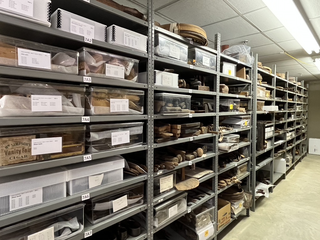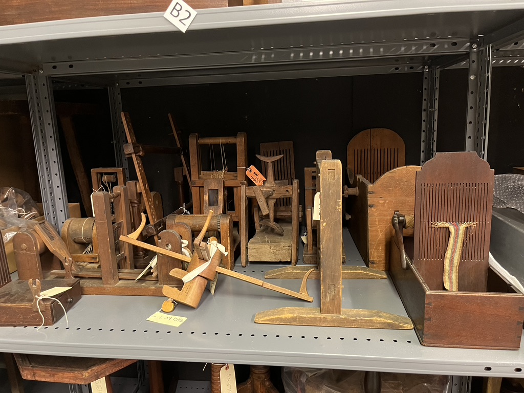 When first entering the storage facility at Sturbridge, we were confronted by high shelves loaded with historical weaving and spinning tools. Swoon!
