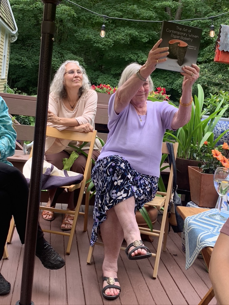 My editor at Schiffer Publishing is the other newest weaver. She arranged for Schiffer to send six books for me to give away. Below my friend Judy just got a book on making paper baskets.
