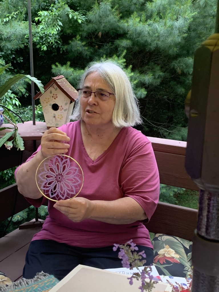 We also had a show and tell. This is Janet who makes bobbin lace and often creates her own patterns.