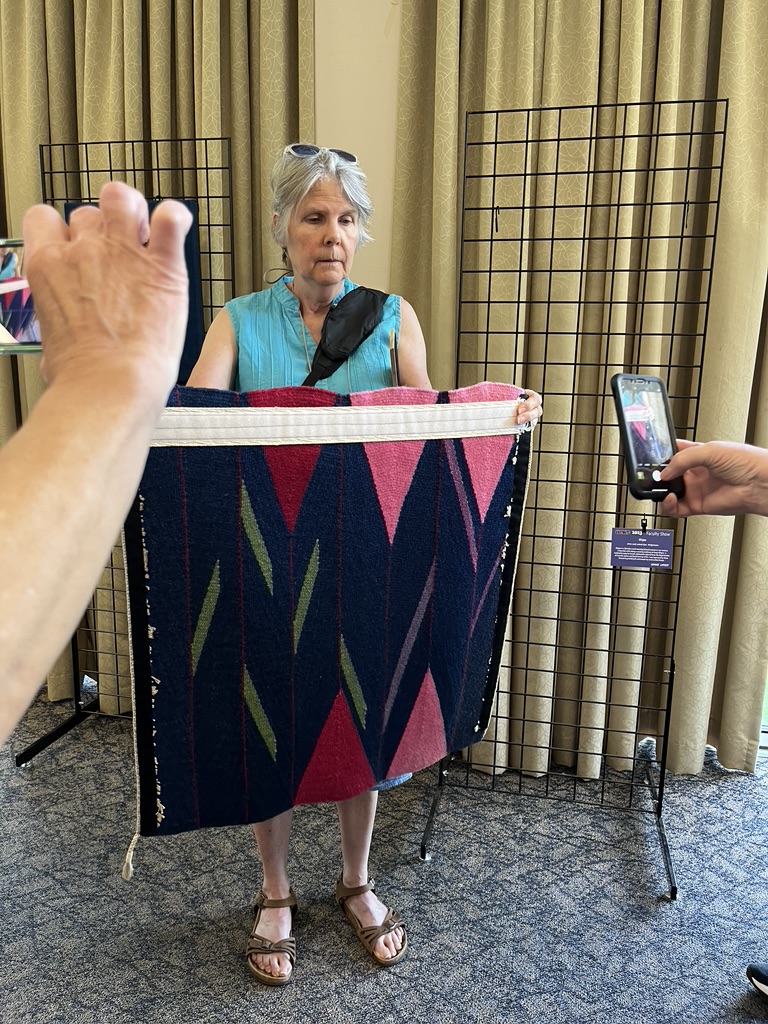 The campus was easy to navigate, even when toting a floor loom with equipment; the food was quite good, and the weather was simply perfect–warm days with breezes and low humidity, cool nights. It was a stellar five days!