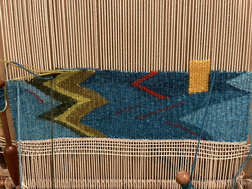 News from home: the wonderful volunteers in TWiNE (Tapestry Weavers in New England) have been hard at work toward an exhibition of members’ works that will open on April 1, the day I fly home. I hope to get there shortly after the opening! If you’re in the area around Leverett, Massachusetts, I hope you will visit this exhibit.
