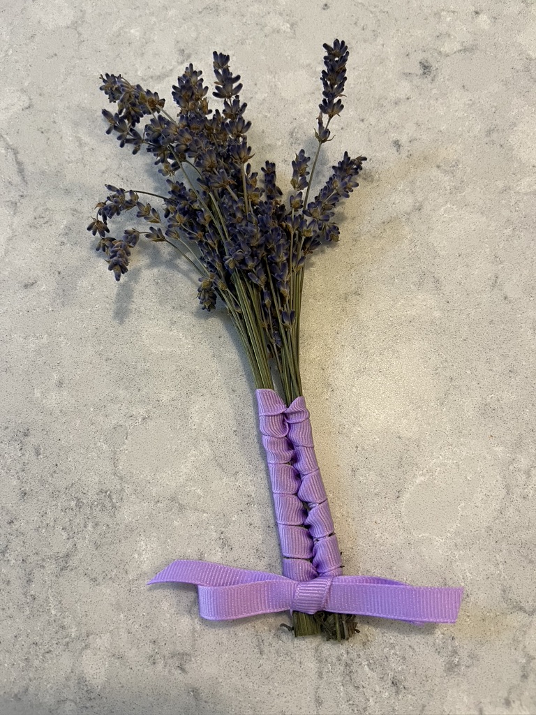 I saved the lavender and have made little bouquets for the guest bathroom and powder room, and I made a little wand to decorate a birthday present for a friend. It smells great right now, so I hope I see my friend soon.