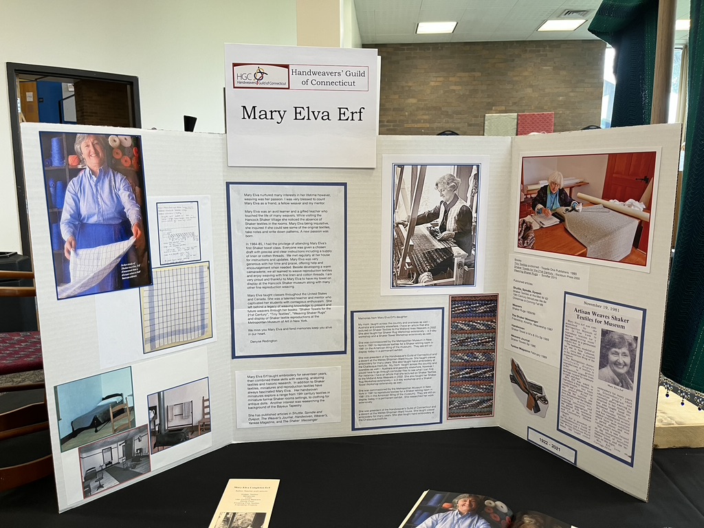 One of the memorable exhibits at this year’s conference was titled “Legacy Weavers,” and it honored the women of guilds in New England who have left us such a wonderful legacy of instruction, woven fabrics, and the memory of their unique personalities. Here is the tribute to Connecticut weaver, Mary Elva Erf. I remember being so thrilled that a member of my guild had published a book (Weaving Shaker Rugs). Now there are quite a few published weavers in the Connecticut guild, including me!