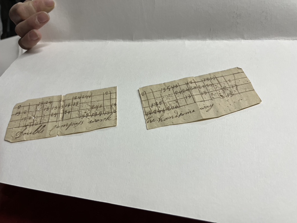 There are handwritten records of weaving drafts, often written on the backs of paper that had been first used for other purposes.