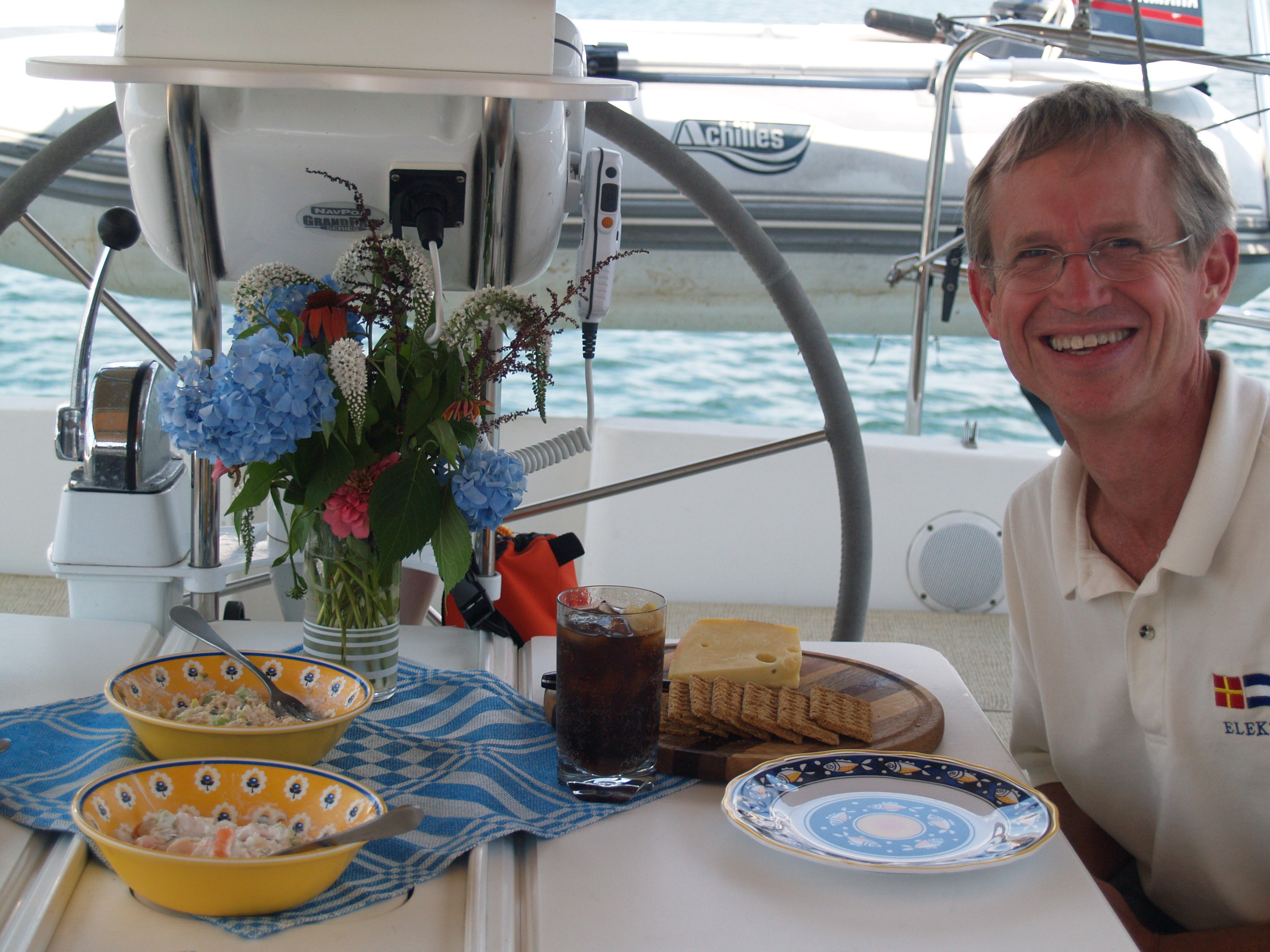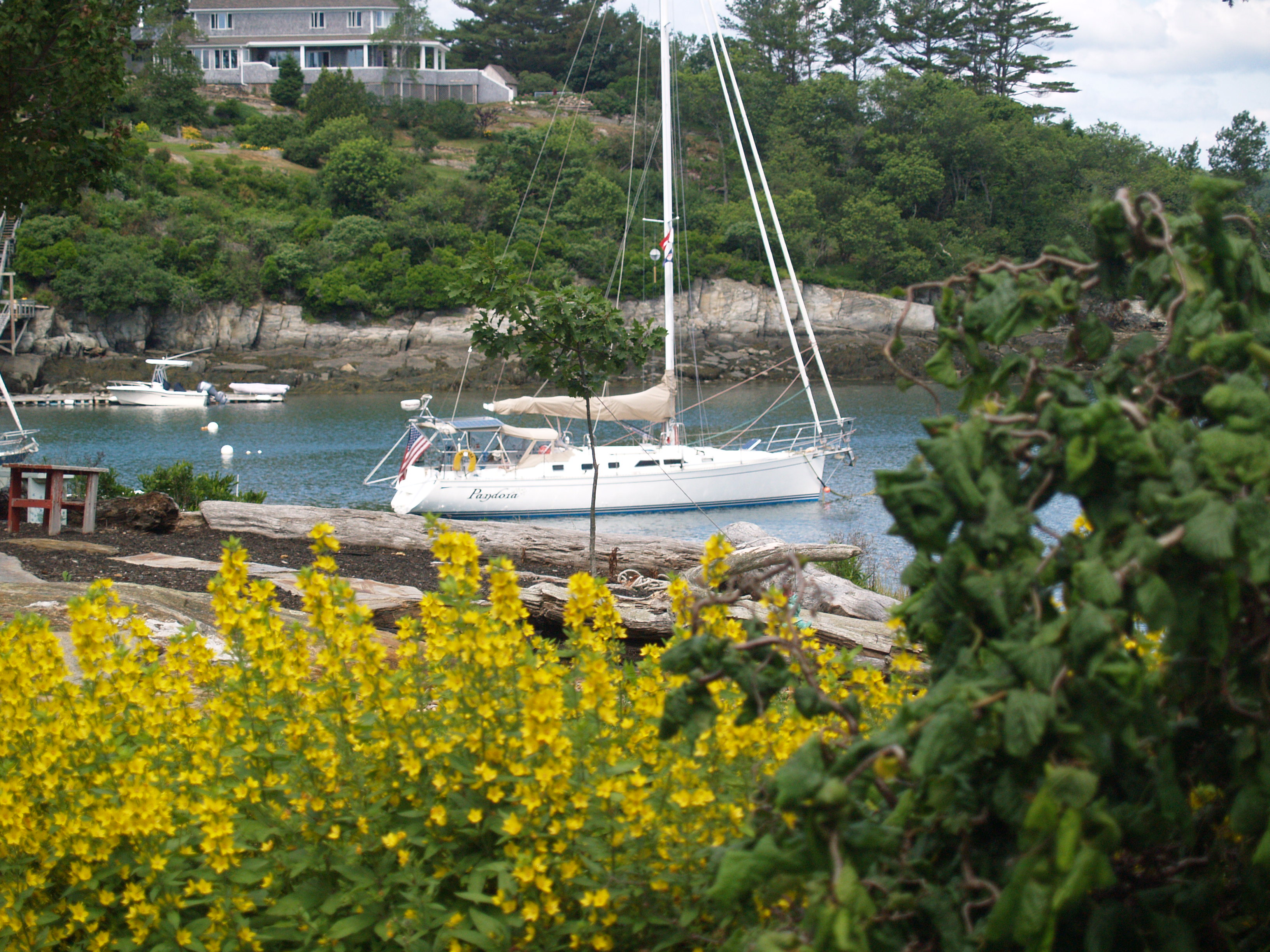 As I write this we are leaving Cundy’s Harbor where we visited good friends with a lovely house and garden right on the harbor.  Their neighbor, a seasoned lobsterman, motored over to us in his boat Life After... while we were headed to the well known “Basin,” and he passed us four lobsters in a bucket!  We will feast tonight!