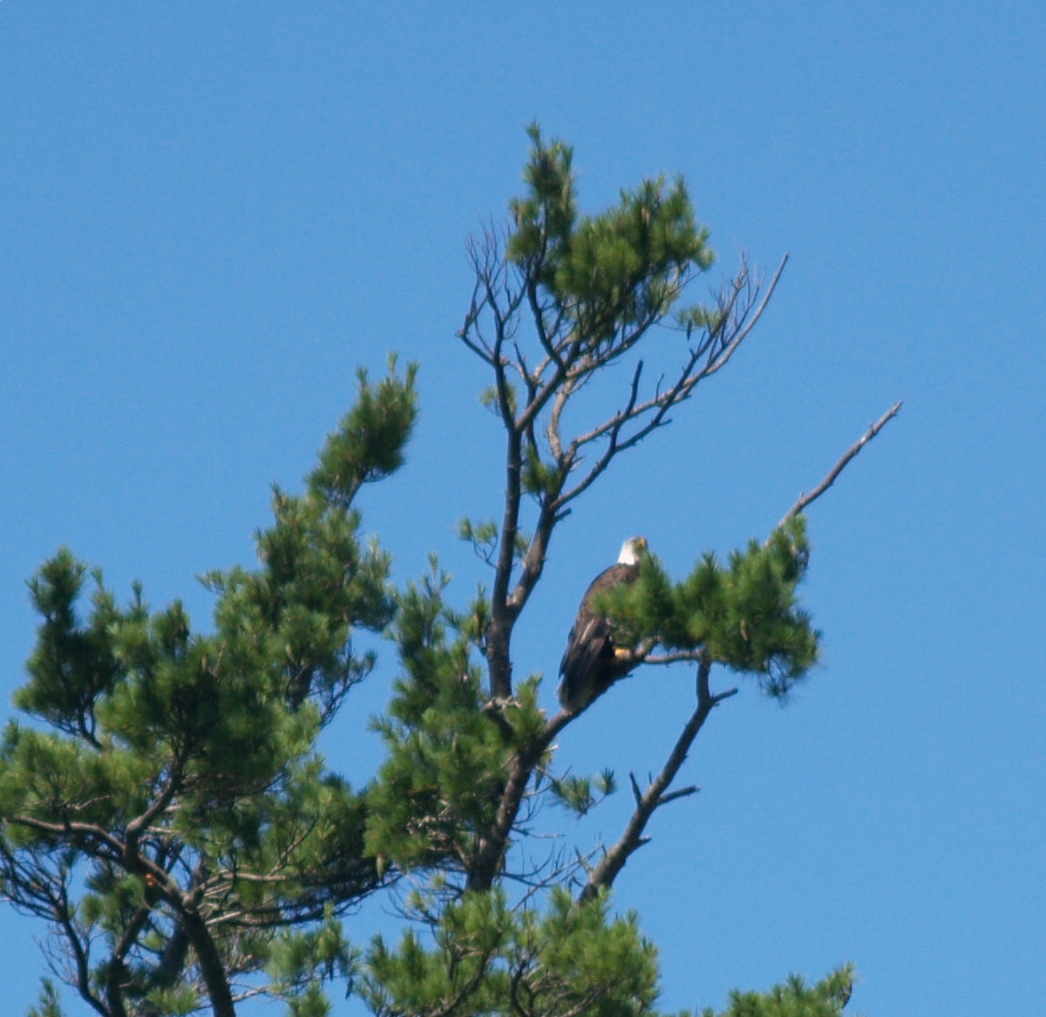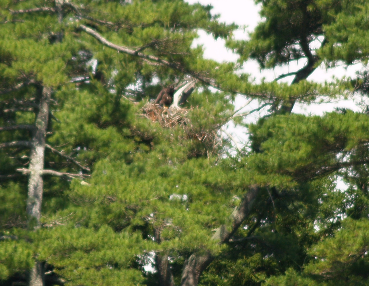 This eagle sat calmly in the tree while a group of ospreys hurled themselves and dived down on her/him!  Right nearby was the eagle’s nest complete with adolescent eaglet.