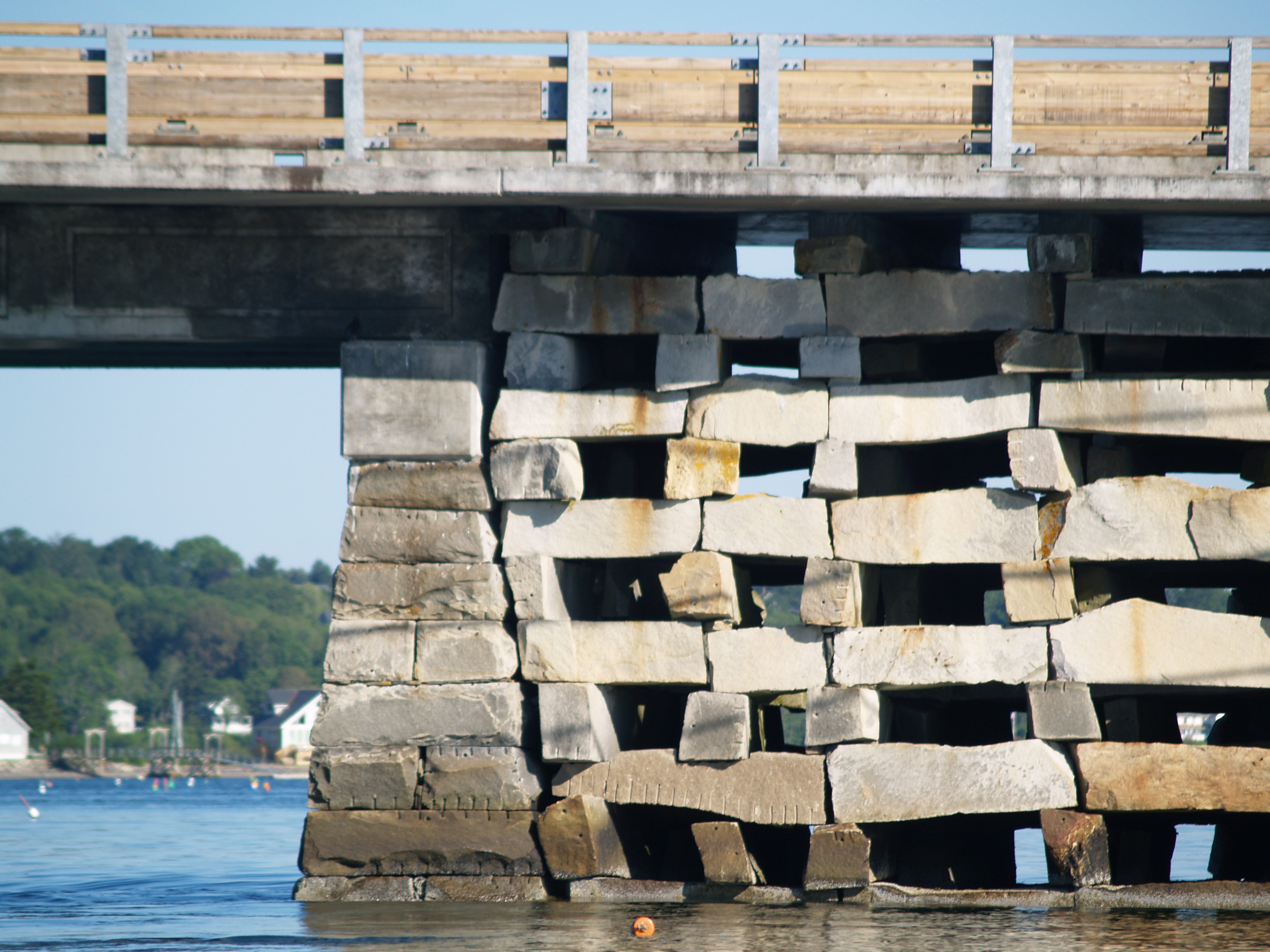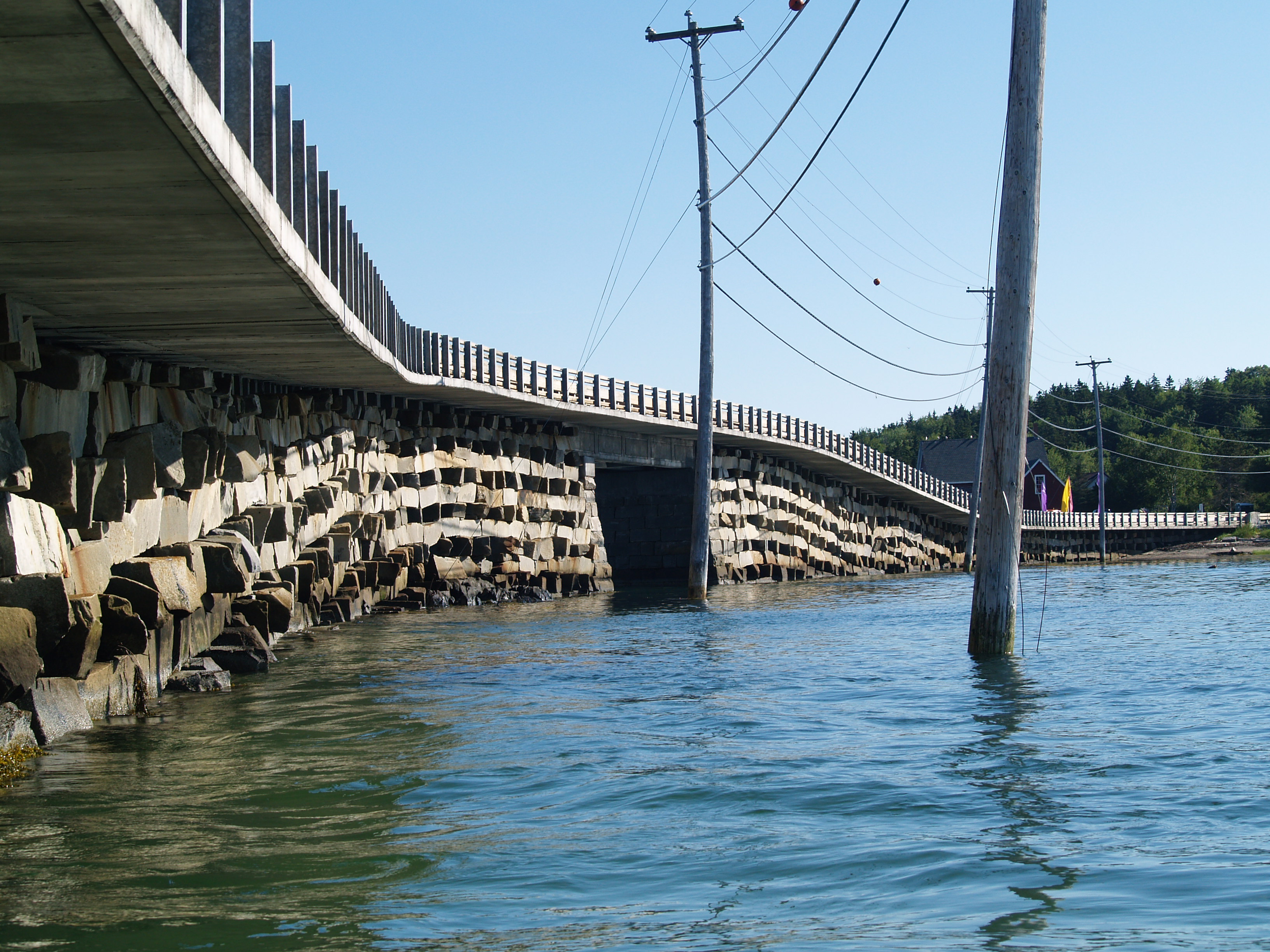 This bridge is built Lincoln Log style out of granite pieces that are resting on each other, no pins or cement of any kind.  Amazing! It was originally in 1927-28 and a recent rebuild was just finished this year. According to local knowledge, there was only one other bridge like it in existence in the 20th century, and that was in Scotland.  That bridge was dismantled during WWII so currently the only cribstone bridge is this one on Bailey’s Island.  We were anchored right on the East side of it!