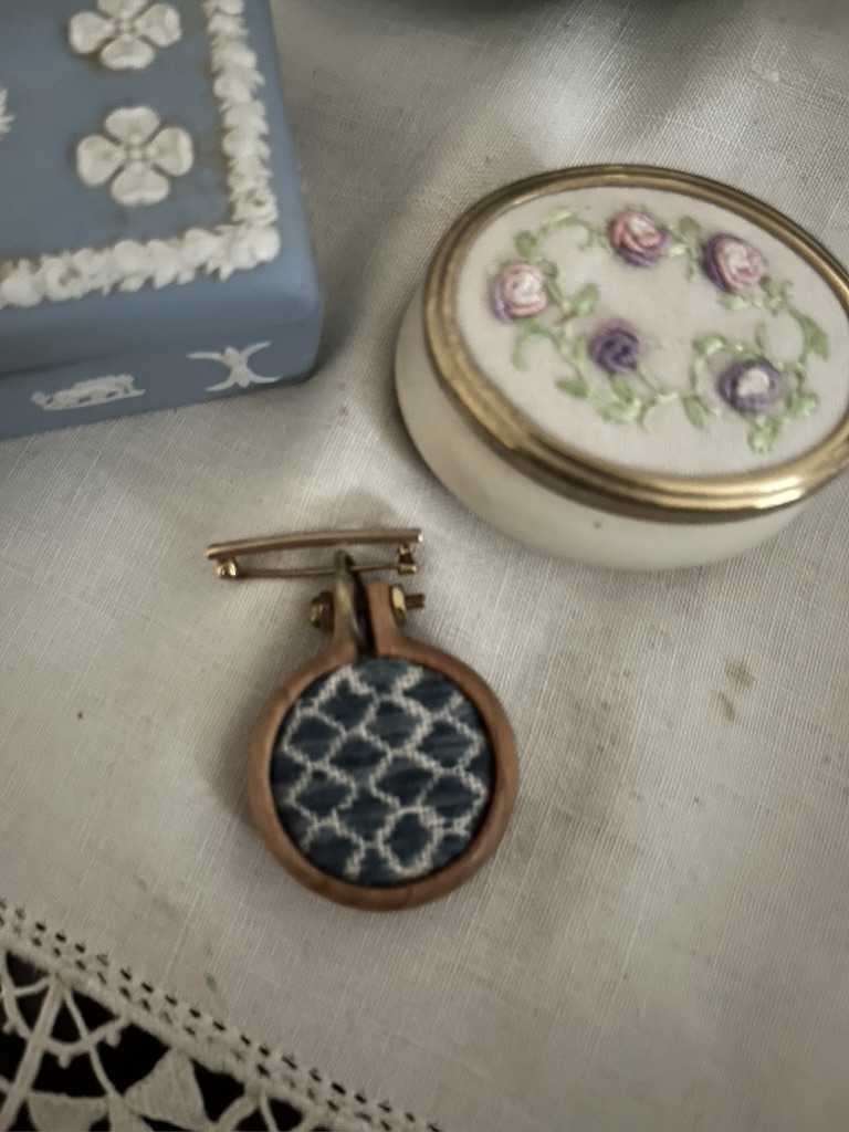 I bought a simpler woven runner as well as this blue and white placemat. I only bought one placemat to use as a center on our table on Pandora. I hope you can see the ‘turkey track’ design between the larger blue stripes. I love it!