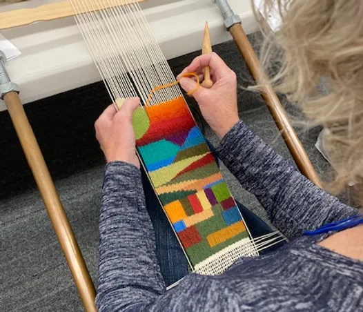 This is a photograph of an image of Maria and the 2nd weaver using the loom together. Slow work